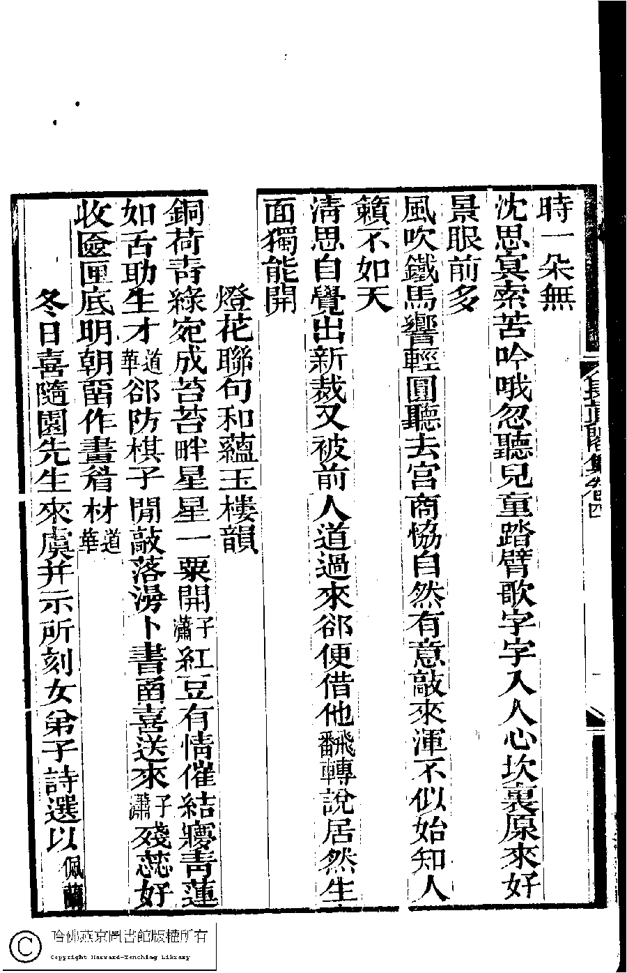 | (PRINT FRIENDLY VERSION) 長真閣集﹕七卷(清席佩蘭撰)。光緖十七年(1891)强氏南皋草廬刻本。 ![]() Page : 4.2a | click for larger image | 長真閣集﹕七卷(清席佩蘭撰)。光緖十七年(1891)强氏南皋草廬刻本。![]() Page : 4.1b | click for larger image | Back |