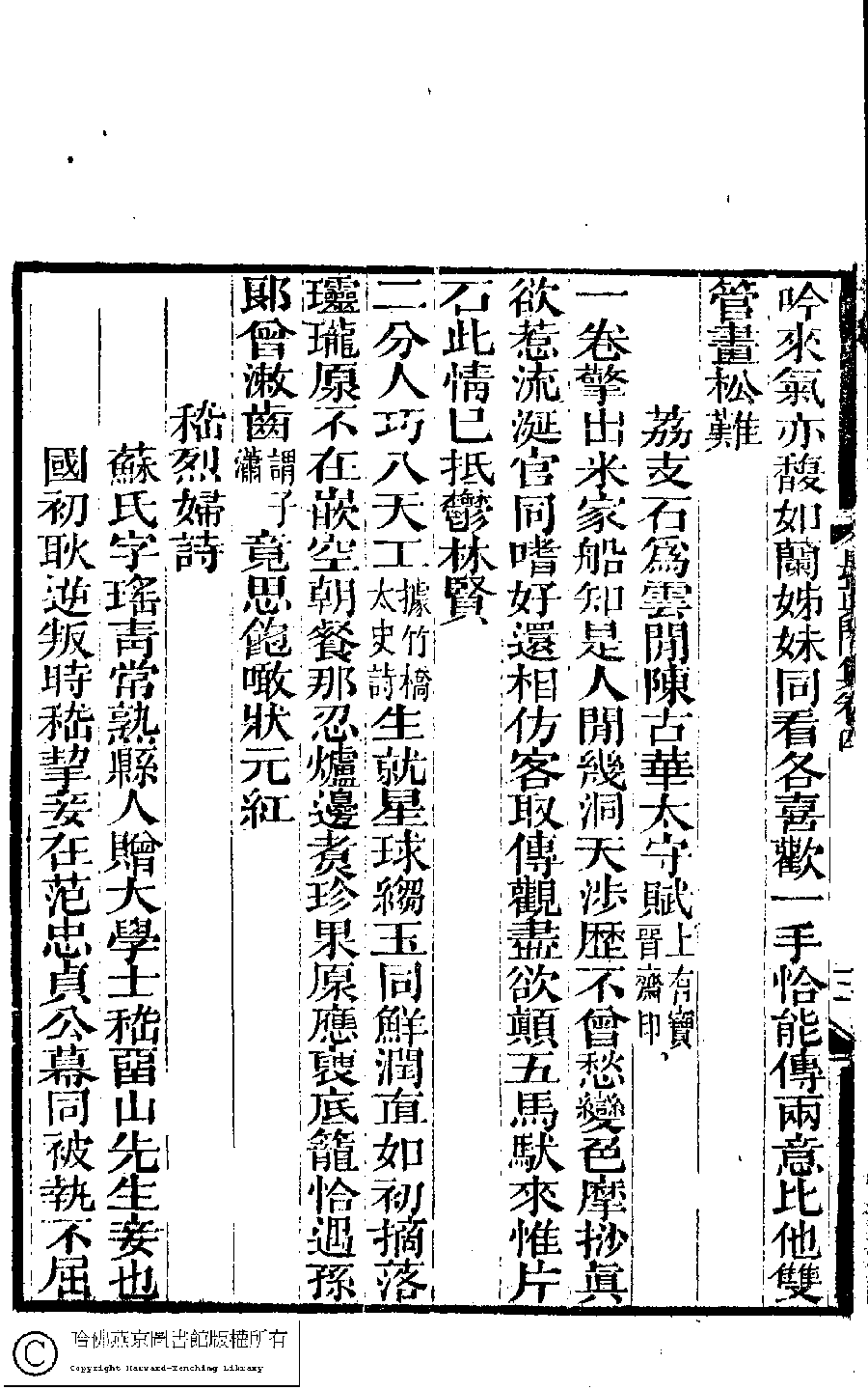 | (PRINT FRIENDLY VERSION) 長真閣集﹕七卷(清席佩蘭撰)。光緖十七年(1891)强氏南皋草廬刻本。 ![]() Page : 4.4a | click for larger image | 長真閣集﹕七卷(清席佩蘭撰)。光緖十七年(1891)强氏南皋草廬刻本。![]() Page : 4.3b | click for larger image | Back |