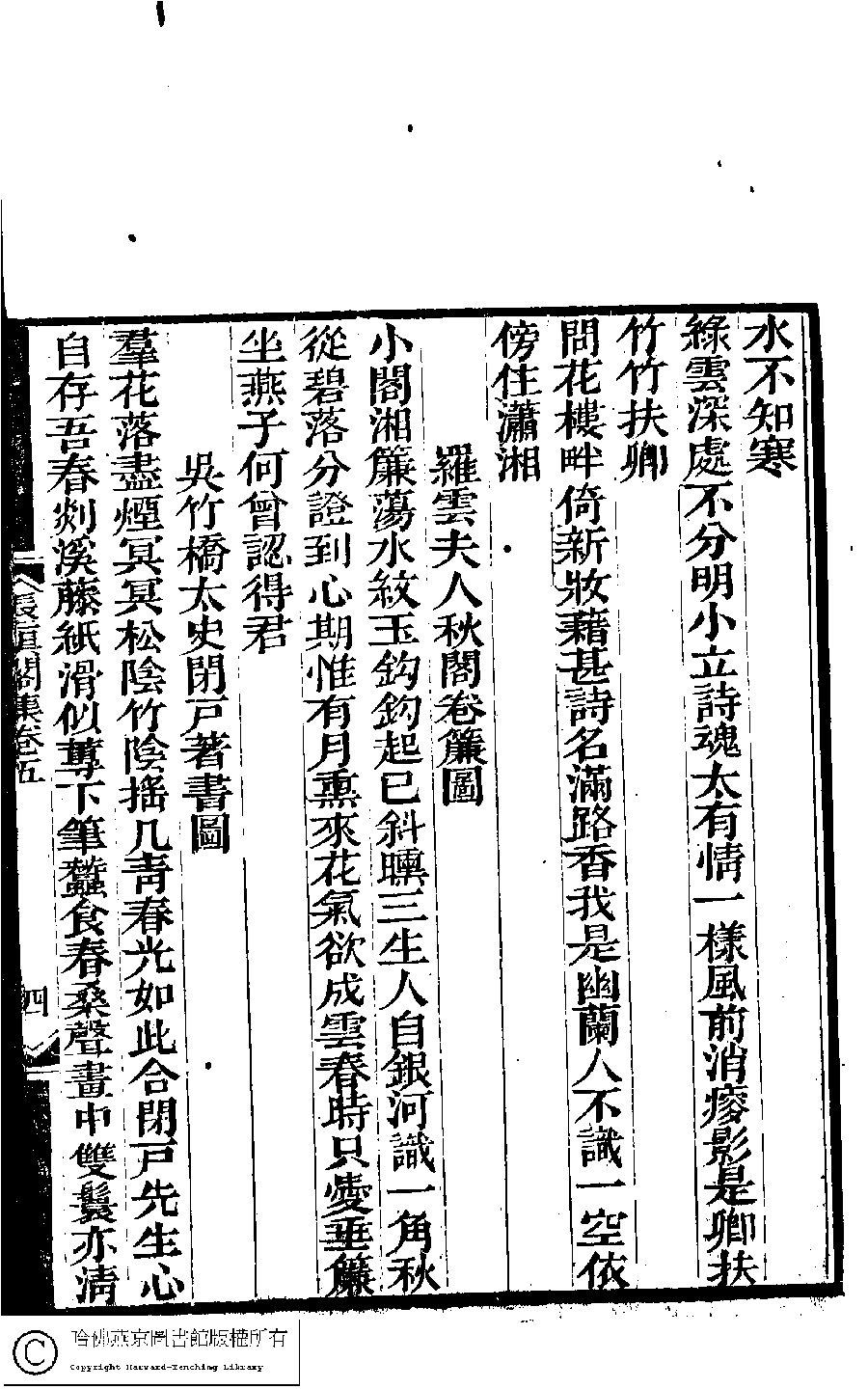 | (PRINT FRIENDLY VERSION) 長真閣集﹕七卷(清席佩蘭撰)。光緖十七年(1891)强氏南皋草廬刻本。 ![]() Page : 5.4a | click for larger image | Back |