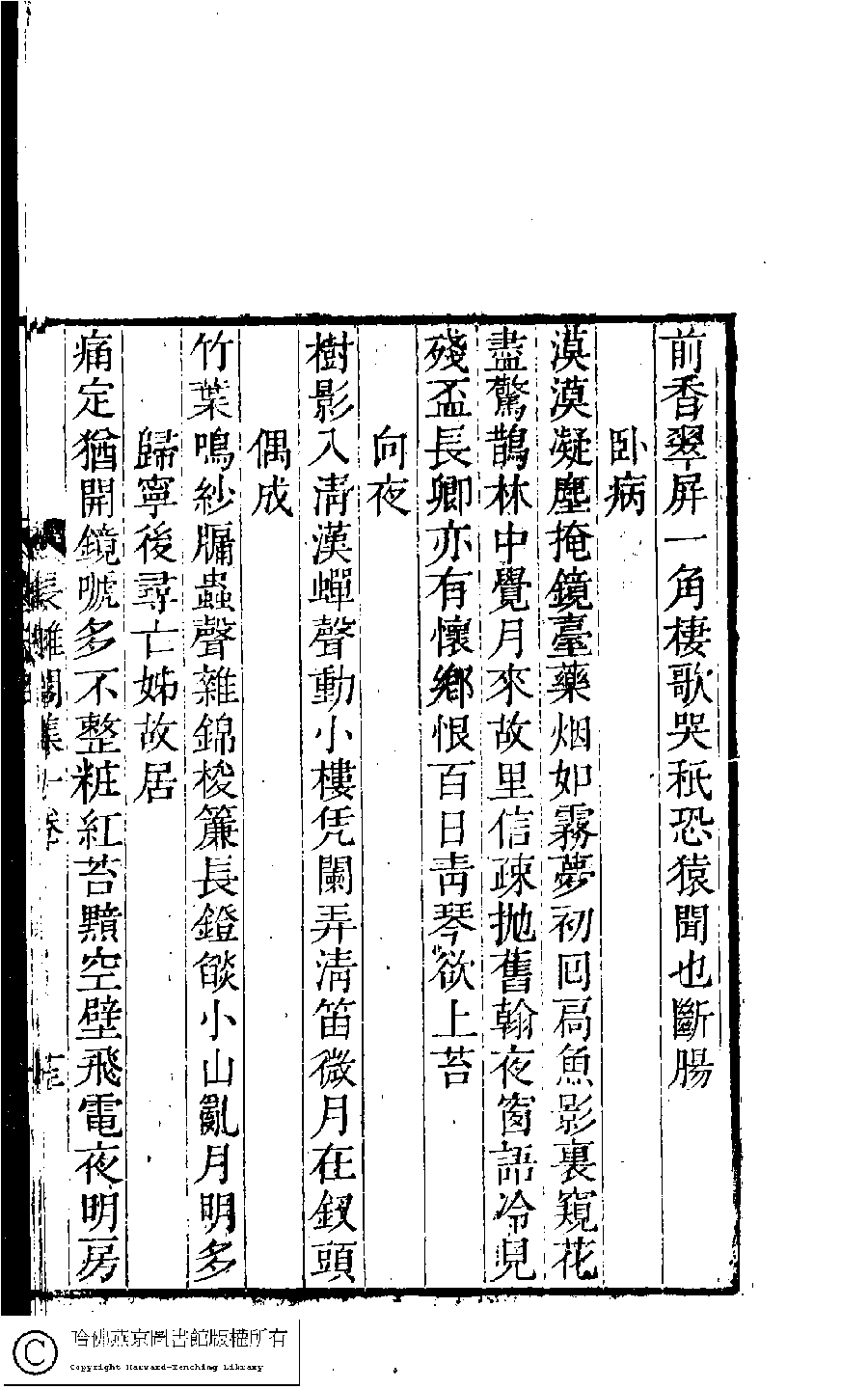 | (PRINT FRIENDLY VERSION) 長離閣集﹕一卷(清王釆薇撰)。清嘉慶二十三年(1818)刻本。 ![]() Page : 13a | click for larger image | 長離閣集﹕一卷(清王釆薇撰)。清嘉慶二十三年(1818)刻本。![]() Page : 12b | click for larger image | Back |