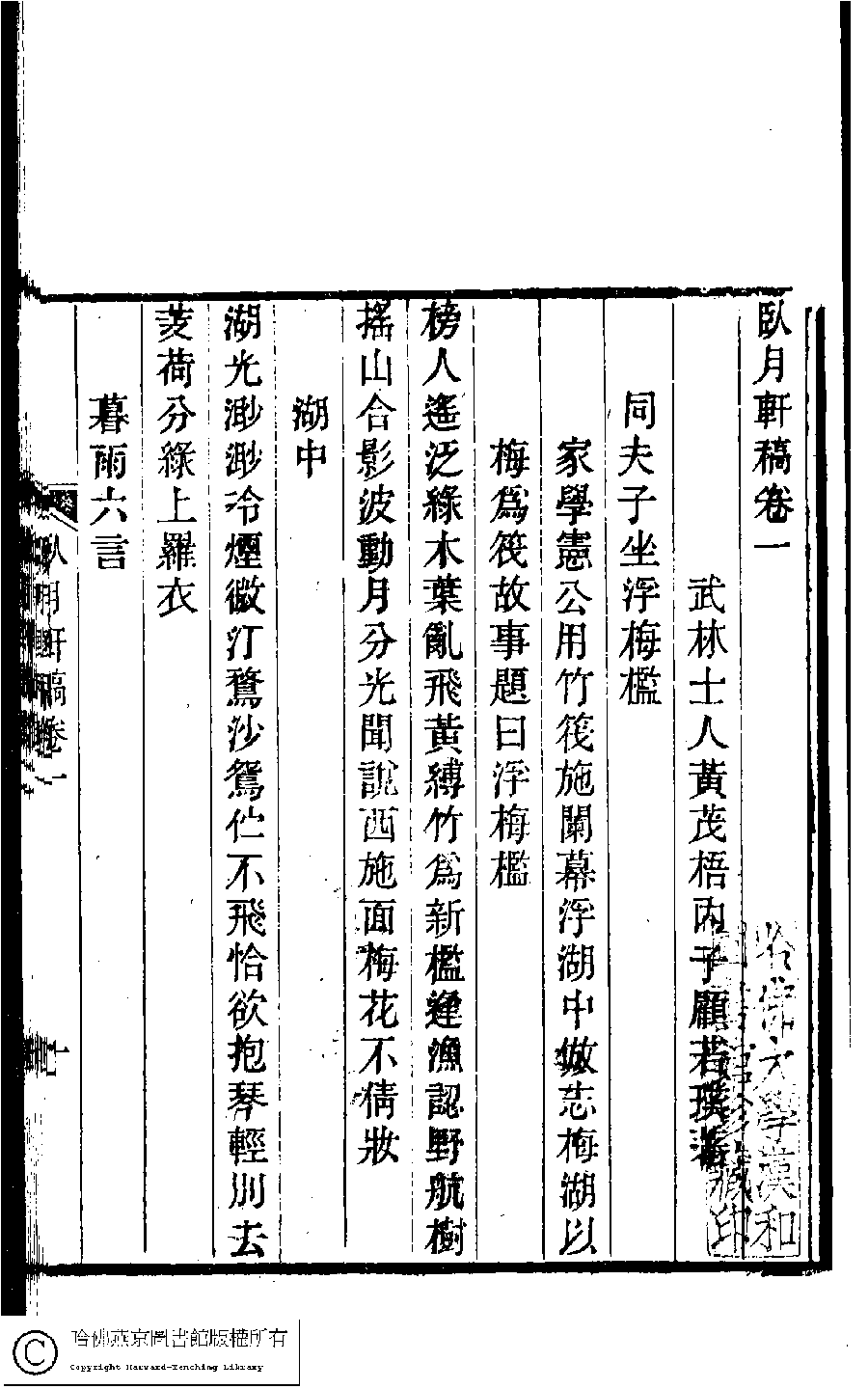 | (PRINT FRIENDLY VERSION) 臥月軒稿﹕三卷(清顧若璞撰)。光緒嘉惠堂丁氏刻本。 ![]() Page : 1.1b | click for larger image | 臥月軒稿﹕三卷(清顧若璞撰)。光緒嘉惠堂丁氏刻本。![]() Page : 1.1a | click for larger image | Back |