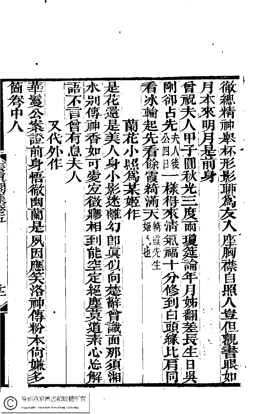 | (PRINT FRIENDLY VERSION) 長真閣集﹕七卷(清席佩蘭撰)。光緖十七年(1891)强氏南皋草廬刻本。 ![]() Page : 5.12a | click for larger image | Back |