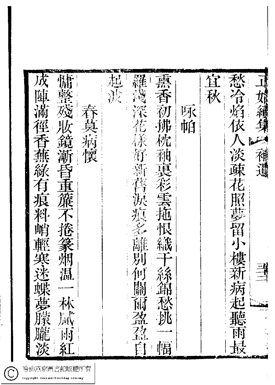 | (PRINT FRIENDLY VERSION) 國朝閨秀正始續集﹕十卷﹐附錄﹕一卷﹐補遺﹕一卷﹐輓詞﹕一卷(清惲珠輯)。清道光十六年(1836)紅香館刻本。 ![]() Page : 補遺.52b | click for larger image | 國朝閨秀正始續集﹕十卷﹐附錄﹕一卷﹐補遺﹕一卷﹐輓詞﹕一卷(清惲珠輯)。清道光十六年(1836)紅香館刻本。![]() Page : 補遺.52a | click for larger image | Back |