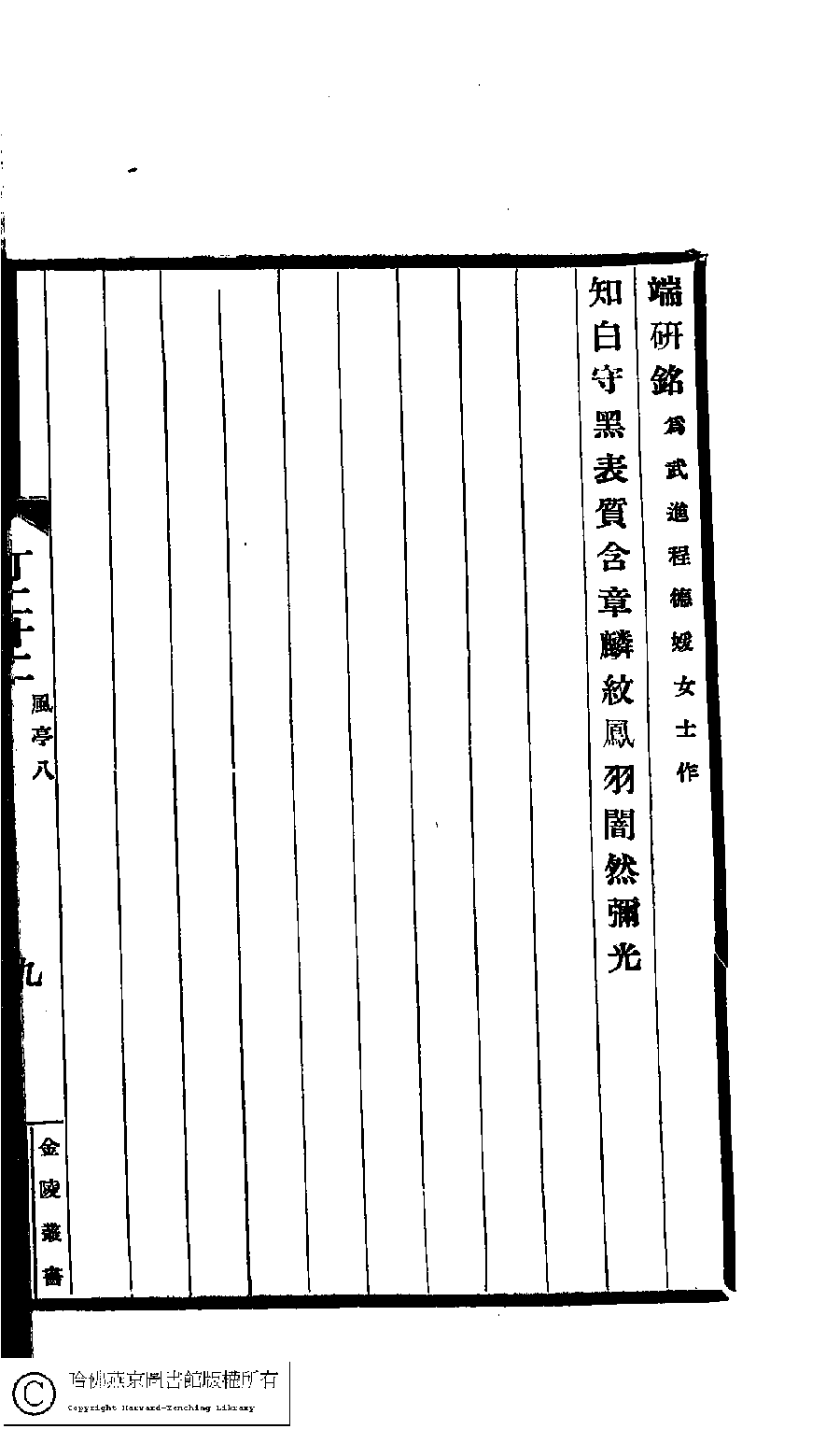 | (PRINT FRIENDLY VERSION) 德風亭初集﹕十三卷(清王貞儀撰)。民國五年(1916)蔣氏[國榜]愼脩書屋校印本。 ![]() Page : 8.9b | click for larger image | 德風亭初集﹕十三卷(清王貞儀撰)。民國五年(1916)蔣氏[國榜]愼脩書屋校印本。![]() Page : 8.9a | click for larger image | Back |