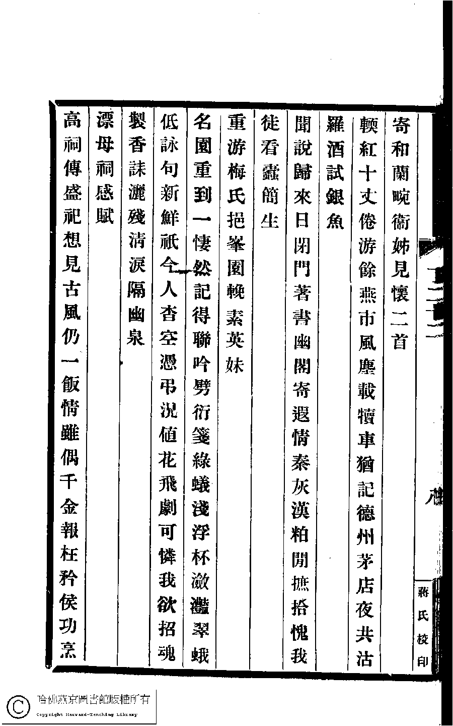 | (PRINT FRIENDLY VERSION) 德風亭初集﹕十三卷(清王貞儀撰)。民國五年(1916)蔣氏[國榜]愼脩書屋校印本。 ![]() Page : 10.8b | click for larger image | Back |