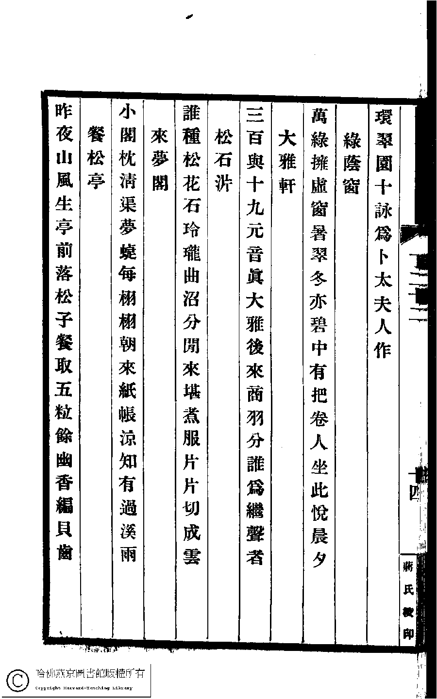 | (PRINT FRIENDLY VERSION) 德風亭初集﹕十三卷(清王貞儀撰)。民國五年(1916)蔣氏[國榜]愼脩書屋校印本。 ![]() Page : 10.14b | click for larger image | Back |
