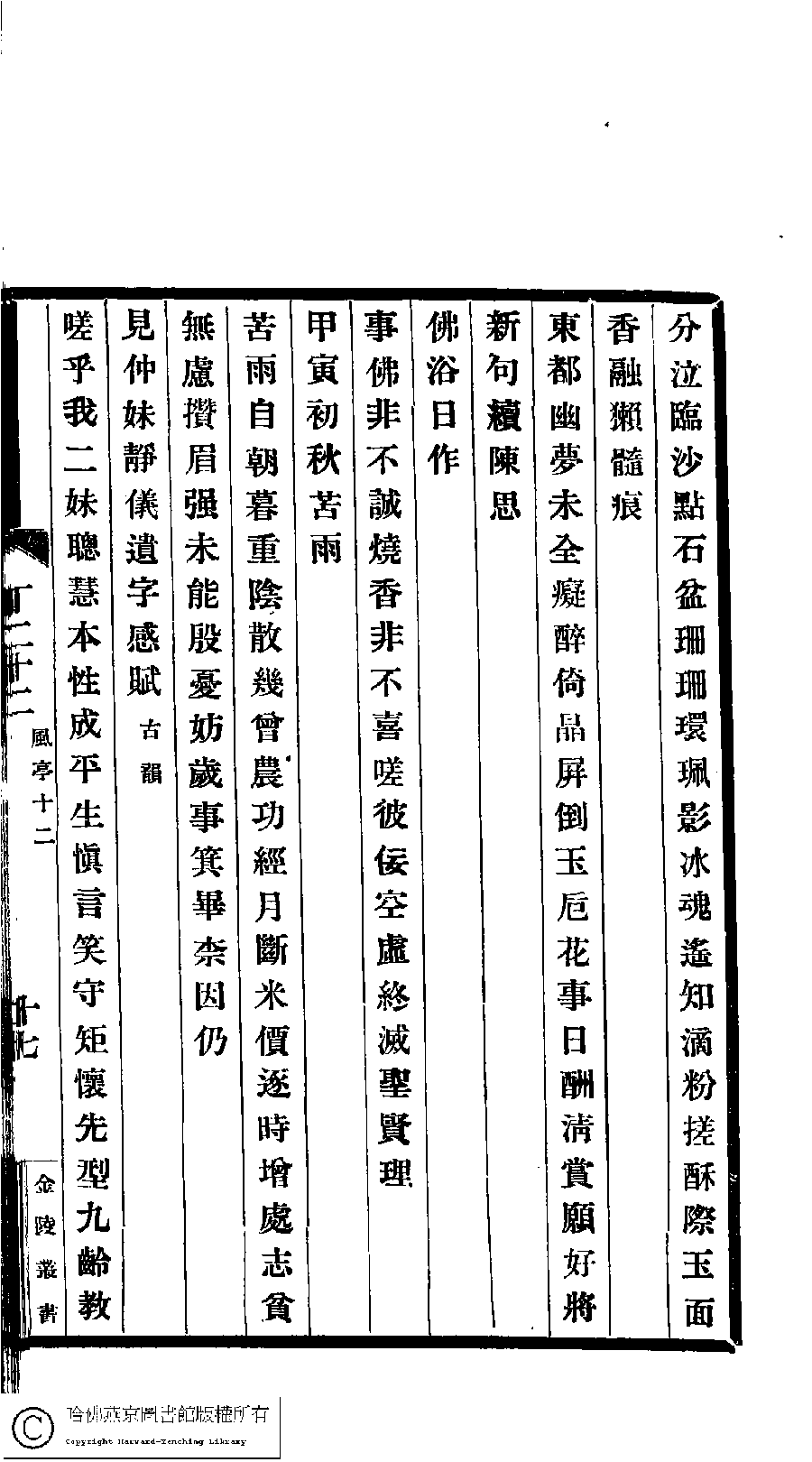 | (PRINT FRIENDLY VERSION) 德風亭初集﹕十三卷(清王貞儀撰)。民國五年(1916)蔣氏[國榜]愼脩書屋校印本。 ![]() Page : 12.17a | click for larger image | Back |
