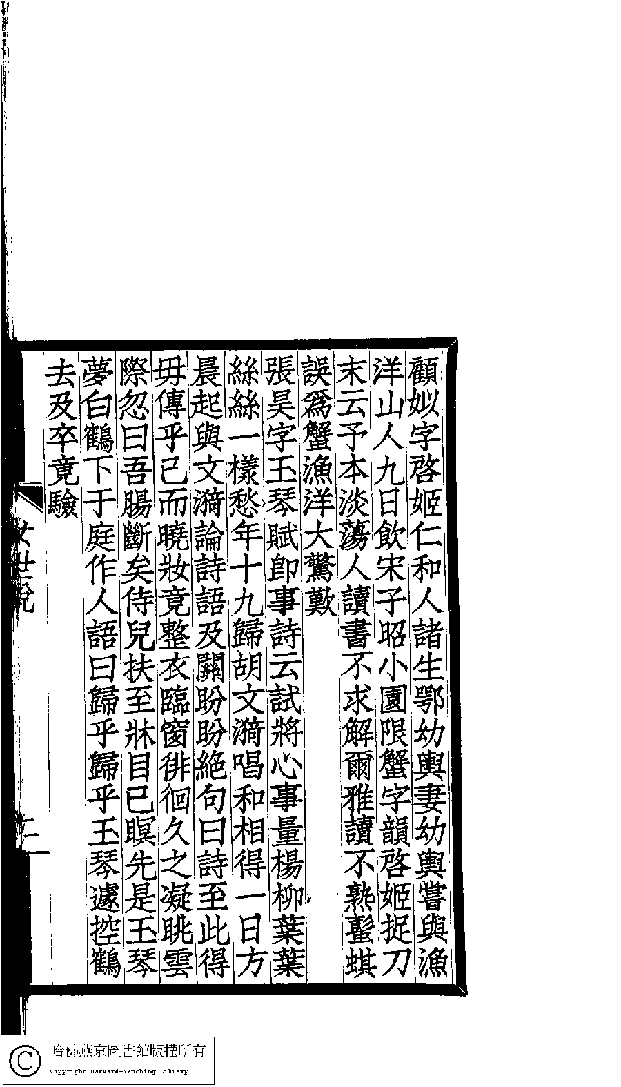 | (PRINT FRIENDLY VERSION) 女世說(清嚴蘅撰)。1921年上海聚珍倣宋印書局印本。 ![]() Page : 2a | click for larger image | Back |