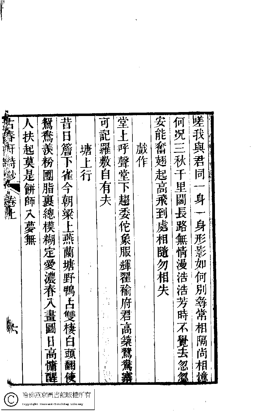 | (PRINT FRIENDLY VERSION) 古春軒詩鈔﹕二卷(清梁德繩撰)。清道光二十九年(1849)刻本。 ![]() Page : 上.6a | click for larger image | Back |