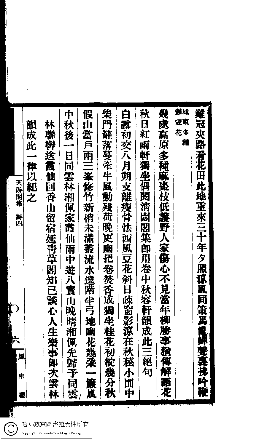 | Appears in: Tian you ge ji: 5 juan, shi bu: 1 juan (by Gu Taiqing, Qing dynasty) |