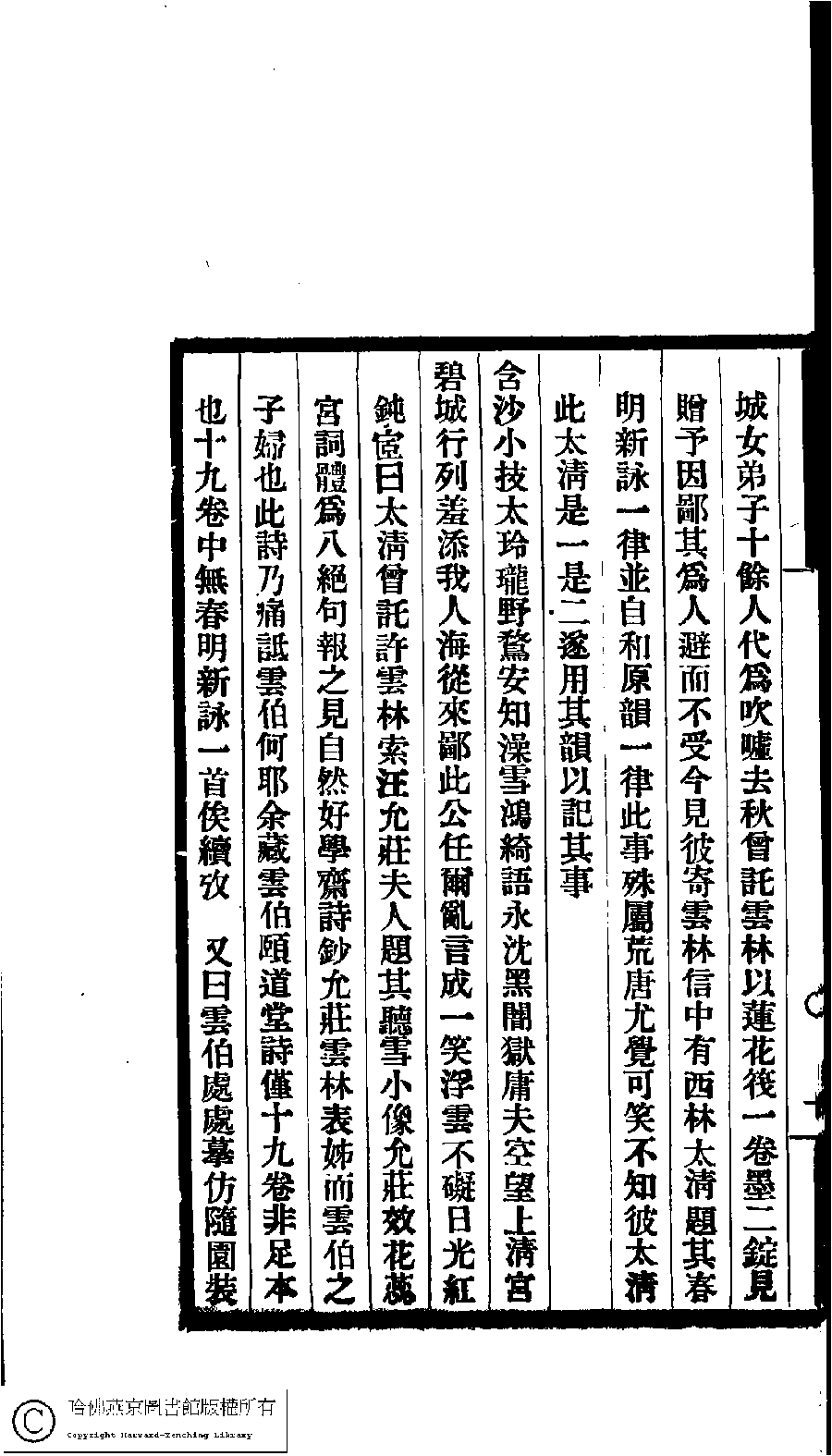 Poem [Qiantang Chen sou zi Yunbo zhe yi xian ren zi ju zhu you Bi cheng xian guan ci chao zhong duo qi yu geng you Bi cheng nü di zi shi yu ren dai wei chui xu qu qiu ceng tuo Yunlin yi lian hua fa yi juan mo er ding jian zeng yu yin bi qi wei ren bi er bu shou jin jian bi ji Yunlin xin zhong you Xilin Taiqing ti qi Chun ming xin yong yi lü bing zi he yuan yun yi lü ci shi shu shu huang tang you jue ke xiao bu zhi bi Taiqing ci Taiqing shi yi shi er sui yong qi yun yi ji qi shi ]