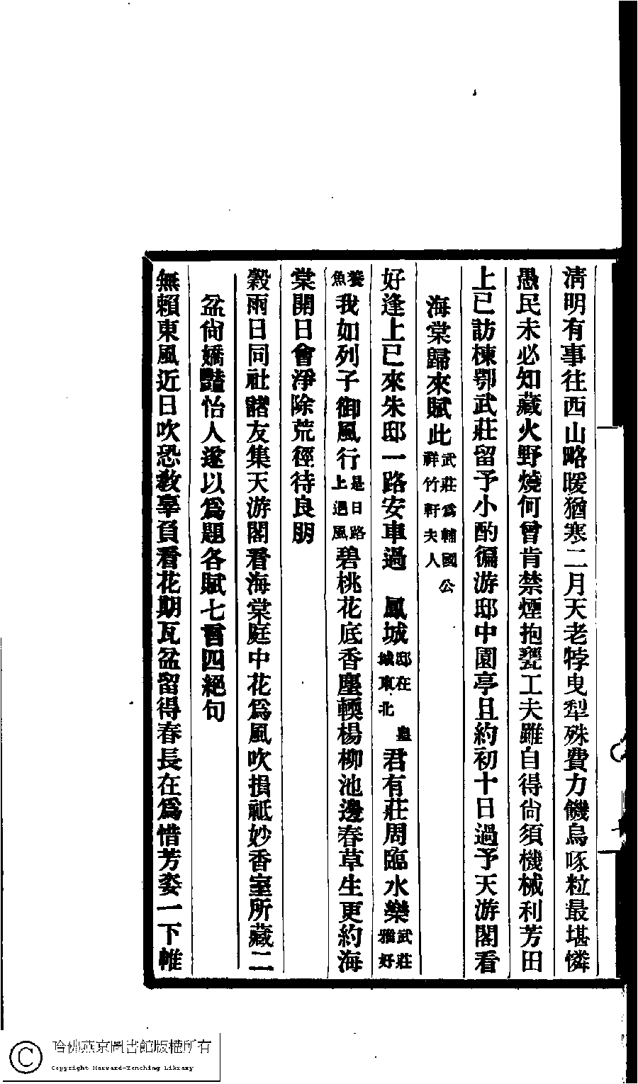 Poem [Gu yu ri tong she zhu you ji Tian you ge kan hai tang ting zhong hua wei feng chui sun zhi Miao xiang shi suo cang er pen shang jiao yan yi ren sui yi wei ti ge fu qi yan si jue ju]