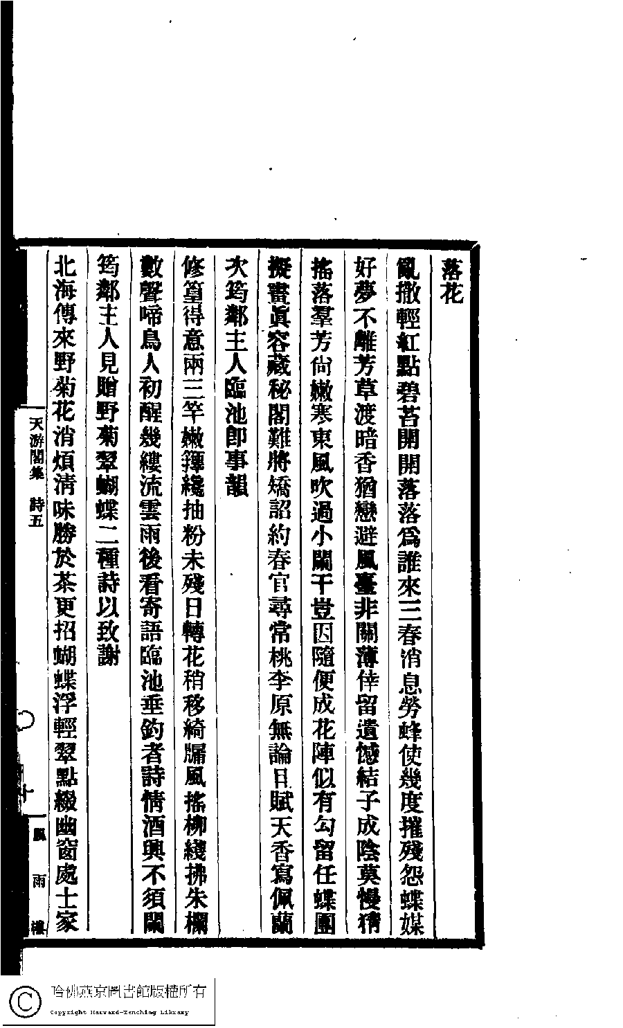 | Appears in: Tian you ge ji: 5 juan, shi bu: 1 juan (by Gu Taiqing, Qing dynasty) |