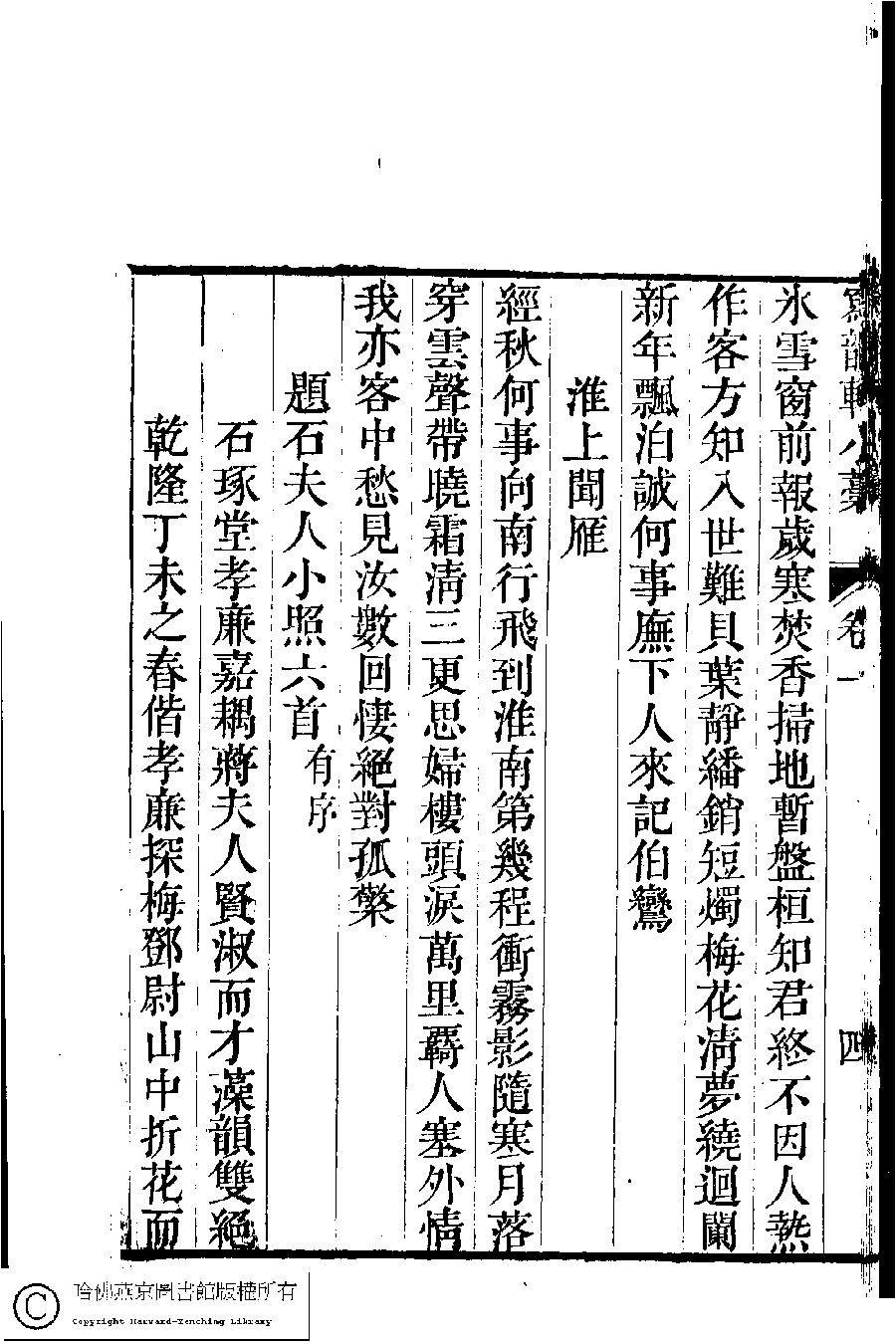 | (PRINT FRIENDLY VERSION) 寫韻軒小藁﹕二卷續增卷(清曹貞秀撰)。清嘉慶二十年(1815)增刋本。 ![]() Page : 1.4b | click for larger image | Back |