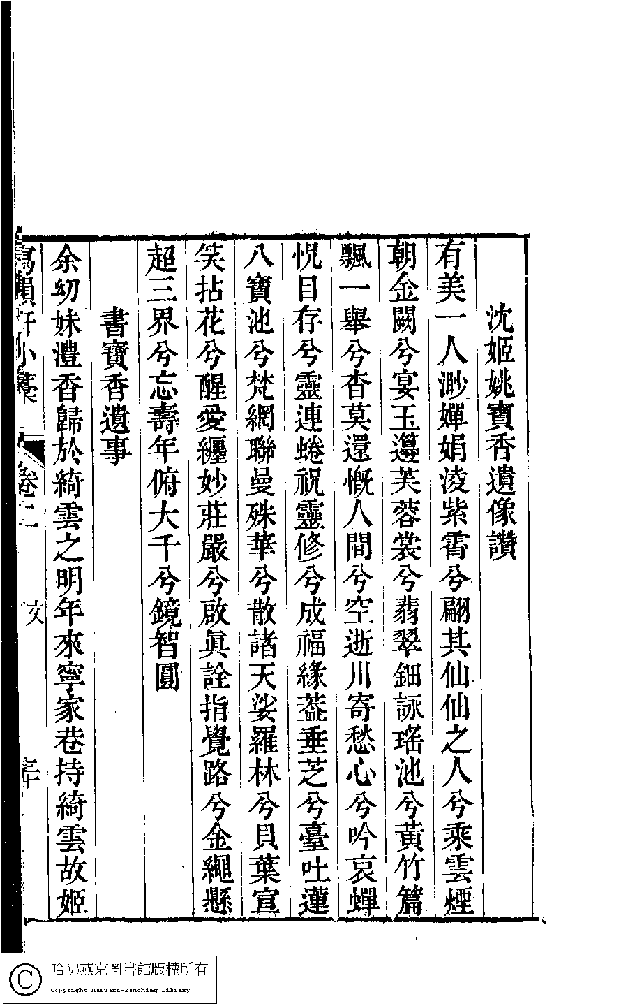 | (PRINT FRIENDLY VERSION) 寫韻軒小藁﹕二卷續增卷(清曹貞秀撰)。清嘉慶二十年(1815)增刋本。 ![]() Page : 2.30b | click for larger image | 寫韻軒小藁﹕二卷續增卷(清曹貞秀撰)。清嘉慶二十年(1815)增刋本。![]() Page : 2.30a | click for larger image | Back |