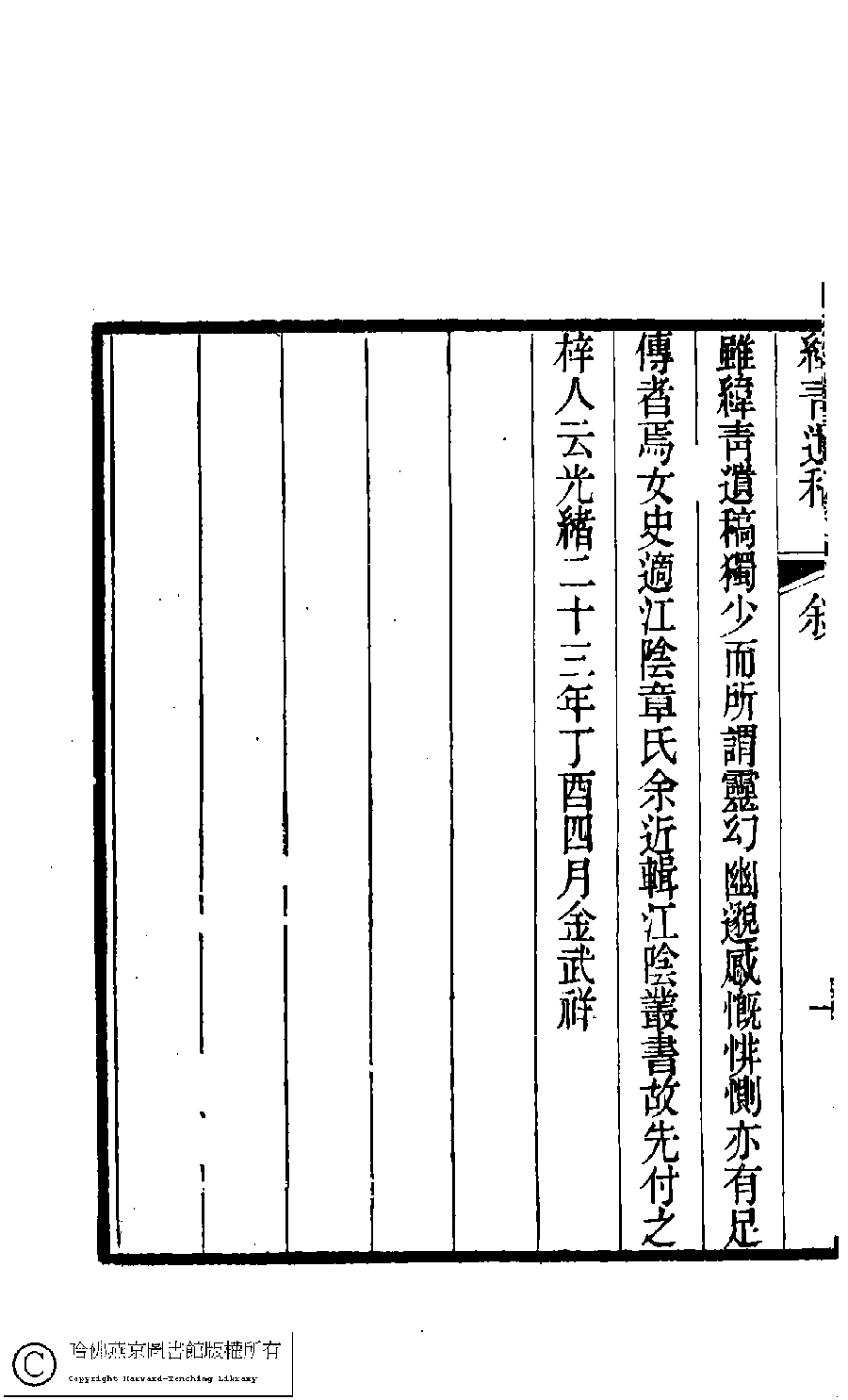 | (PRINT FRIENDLY VERSION) 緯青遺稿﹕一卷(清張𥿑英)。光緖十五年(1889)江隂金氏校刊本。 ![]() Page : 序.1b | click for larger image | 緯青遺稿﹕一卷(清張𥿑英)。光緖十五年(1889)江隂金氏校刊本。![]() Page : 序.1a | click for larger image | Back |