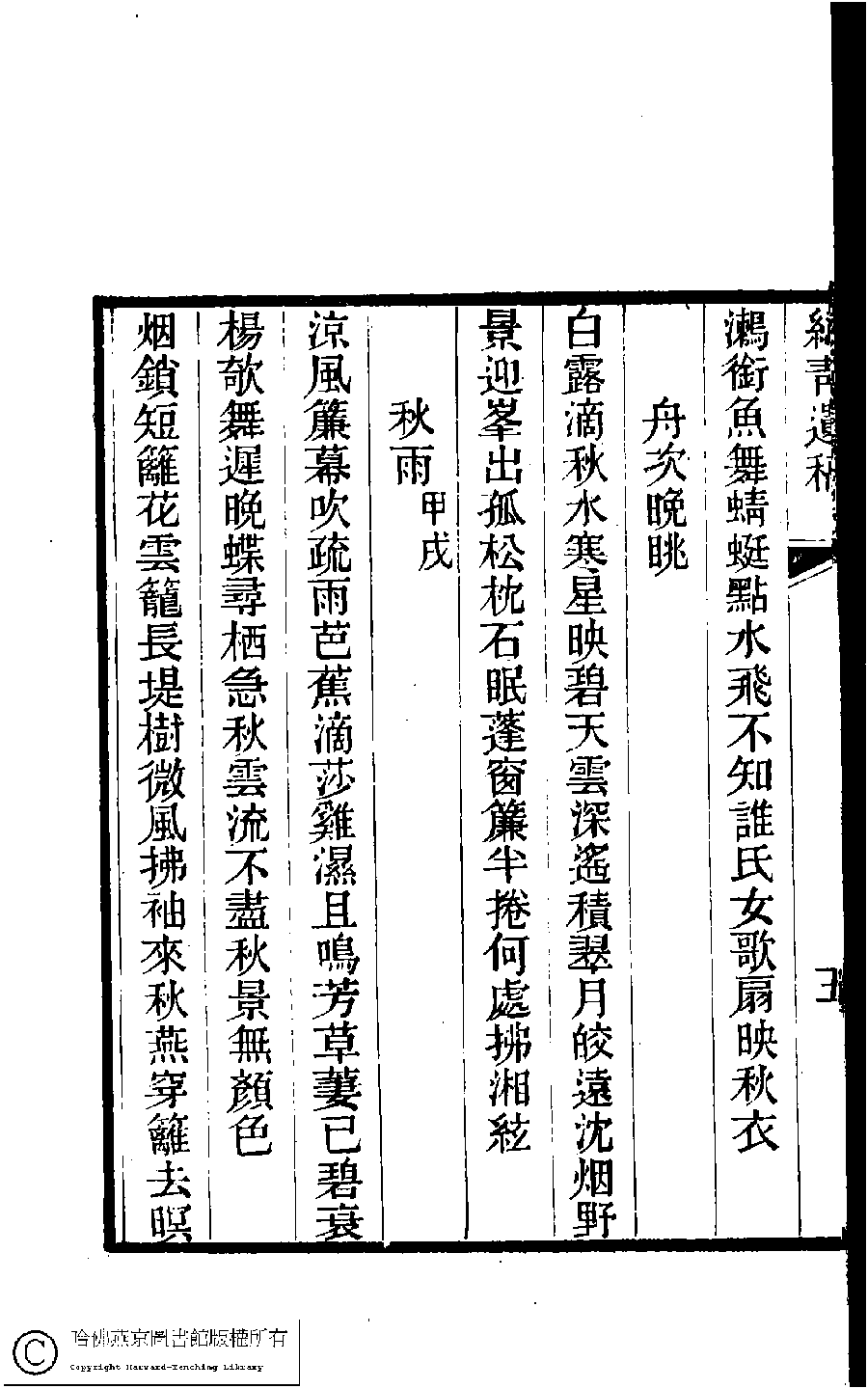 | (PRINT FRIENDLY VERSION) 緯青遺稿﹕一卷(清張𥿑英)。光緖十五年(1889)江隂金氏校刊本。 ![]() Page : 5b | click for larger image | Back |