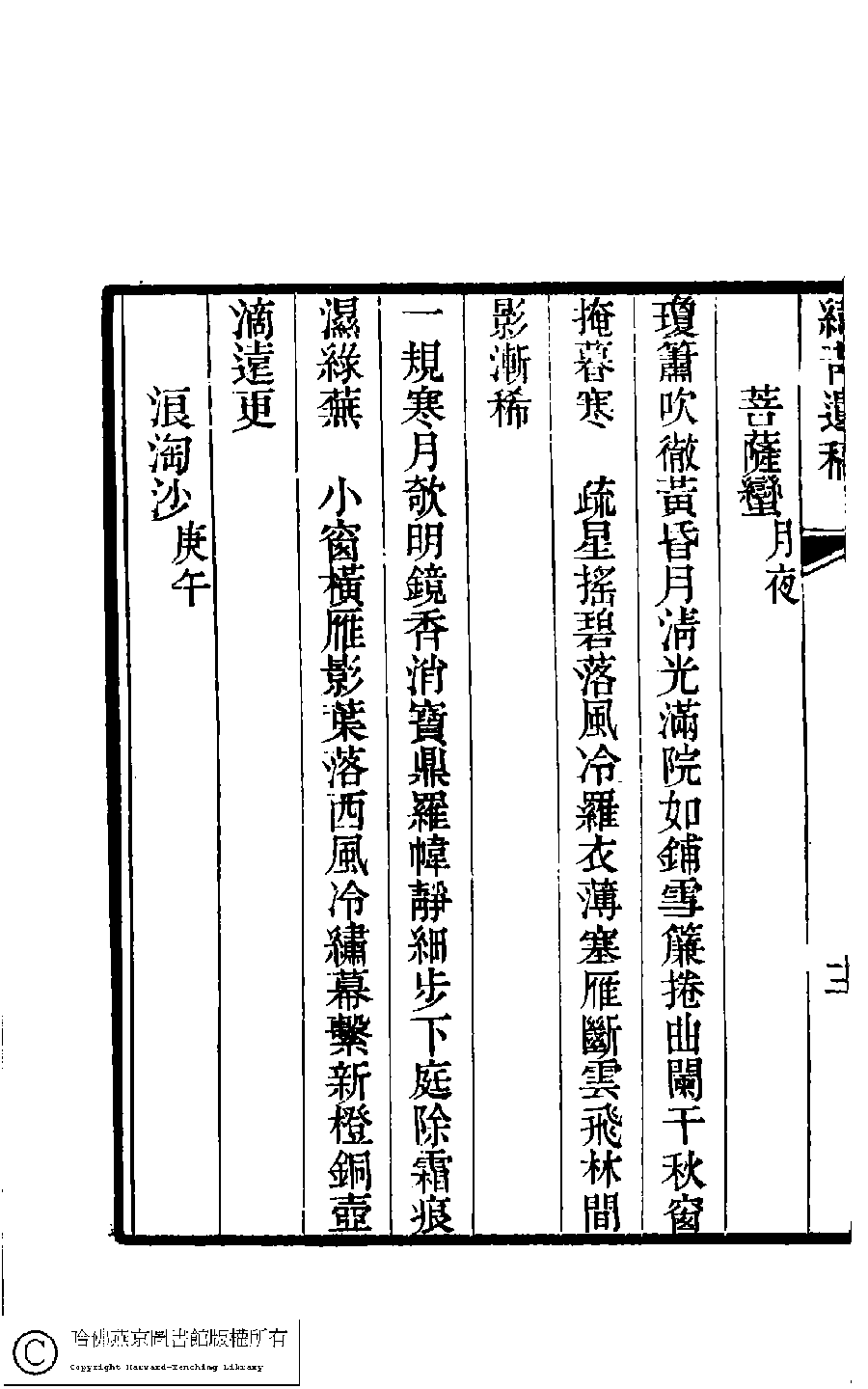 | (PRINT FRIENDLY VERSION) 緯青遺稿﹕一卷(清張𥿑英)。光緖十五年(1889)江隂金氏校刊本。 ![]() Page : 12b | click for larger image | Back |