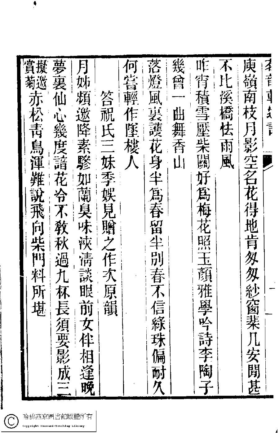 | (PRINT FRIENDLY VERSION) 茗韻軒遺詩﹕一卷(清王甥植撰)。清同治四年(1865)紫琅寓館刻本。 ![]() Page : 10b | click for larger image | Back |
