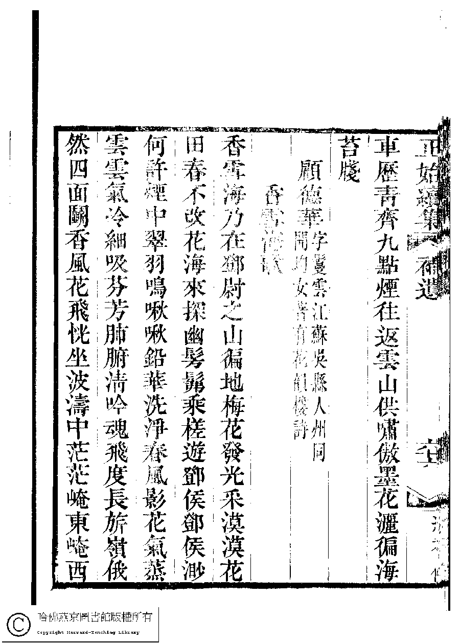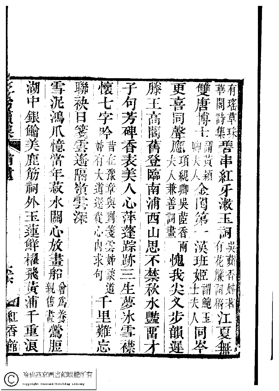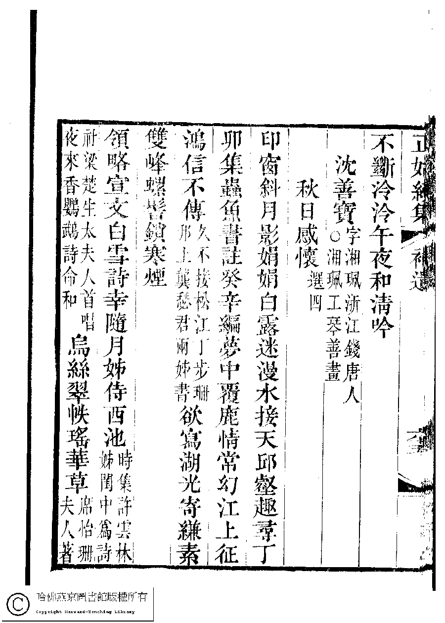 | (PRINT FRIENDLY VERSION) 國朝閨秀正始續集﹕十卷﹐附錄﹕一卷﹐補遺﹕一卷﹐輓詞﹕一卷(清惲珠輯)。清道光十六年(1836)紅香館刻本。 ![]() Page : 補遺.66b | click for larger image | 國朝閨秀正始續集﹕十卷﹐附錄﹕一卷﹐補遺﹕一卷﹐輓詞﹕一卷(清惲珠輯)。清道光十六年(1836)紅香館刻本。![]() Page : 補遺.66a | click for larger image | 國朝閨秀正始續集﹕十卷﹐附錄﹕一卷﹐補遺﹕一卷﹐輓詞﹕一卷(清惲珠輯)。清道光十六年(1836)紅香館刻本。![]() Page : 補遺.65b | click for larger image | Back |