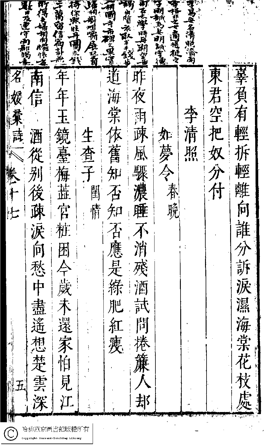 | (PRINT FRIENDLY VERSION) 名媛彙詩﹕二十卷(明鄭文昂編)。張正岳明泰昌元年(1620)刻本。 ![]() Page : 17.5a | click for larger image | 名媛彙詩﹕二十卷(明鄭文昂編)。張正岳明泰昌元年(1620)刻本。![]() Page : 17.4b | click for larger image | Back |
