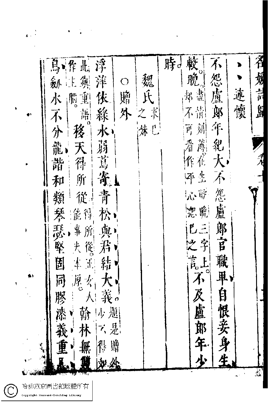 | (PRINT FRIENDLY VERSION) 名媛詩歸﹕三十六卷(鍾惺點次)。明末(1621-1644)刻本 ![]() Page : 10.13b | click for larger image | Back |
