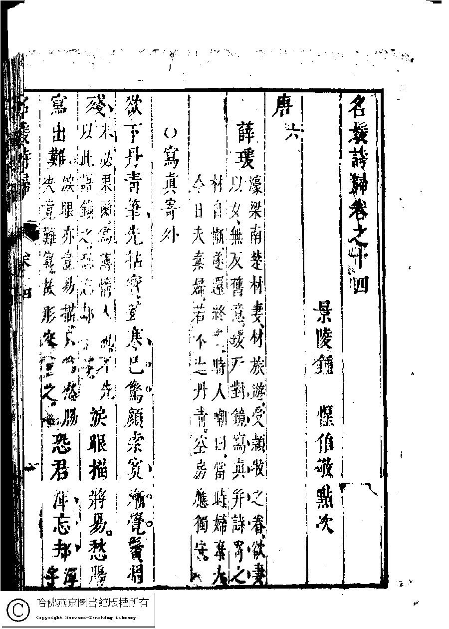 | (PRINT FRIENDLY VERSION) 名媛詩歸﹕三十六卷(鍾惺點次)。明末(1621-1644)刻本 ![]() Page : 14.1a | click for larger image | Back |