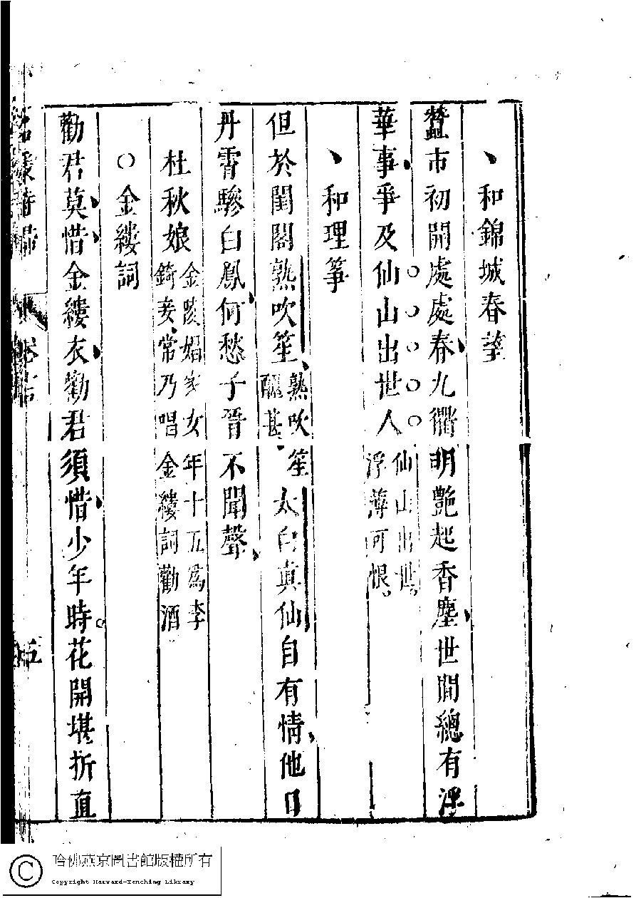 | (PRINT FRIENDLY VERSION) 名媛詩歸﹕三十六卷(鍾惺點次)。明末(1621-1644)刻本 ![]() Page : 15.5a | click for larger image | Back |