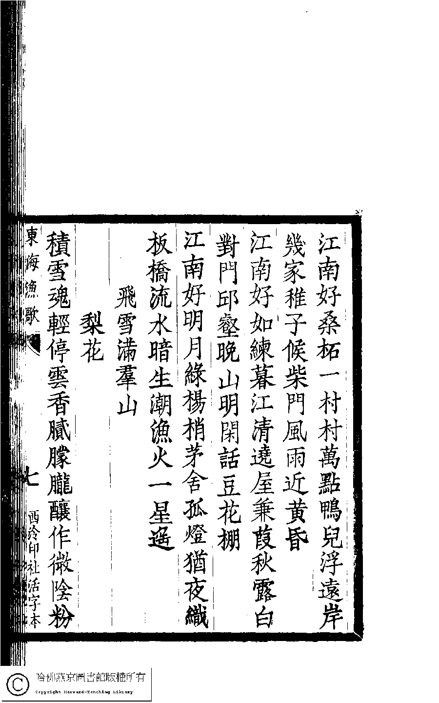 | (PRINT FRIENDLY VERSION) 東海漁歌:四卷, 補遺:一卷(清顧春撰)。西泠印社甲寅(1914) 年排印本 ![]() Page : 1.7b | click for larger image | 東海漁歌:四卷, 補遺:一卷(清顧春撰)。西泠印社甲寅(1914) 年排印本![]() Page : 1.7a | click for larger image | Back |