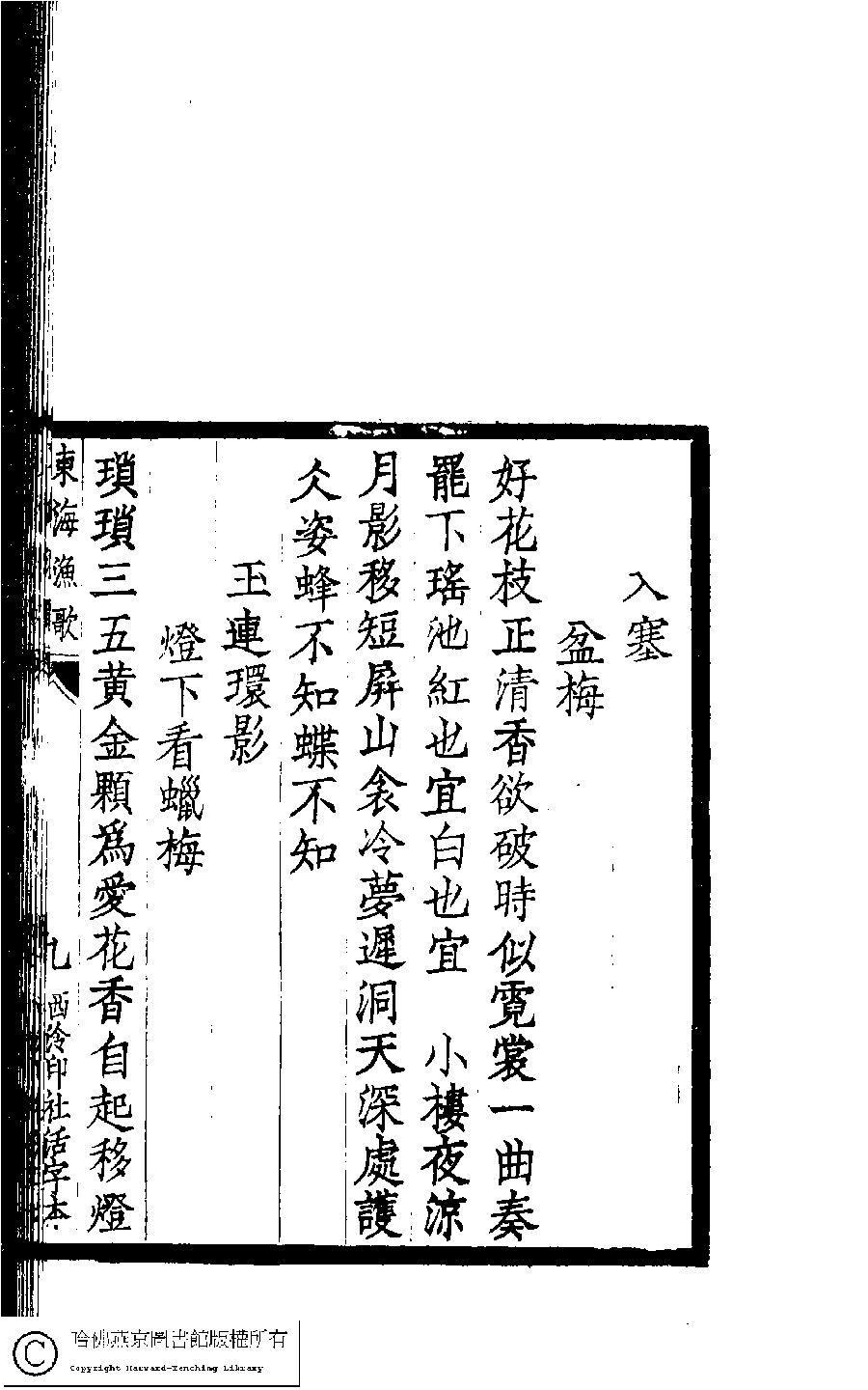 | (PRINT FRIENDLY VERSION) 東海漁歌:四卷, 補遺:一卷(清顧春撰)。西泠印社甲寅(1914) 年排印本 ![]() Page : 1.9b | click for larger image | 東海漁歌:四卷, 補遺:一卷(清顧春撰)。西泠印社甲寅(1914) 年排印本![]() Page : 1.9a | click for larger image | Back |