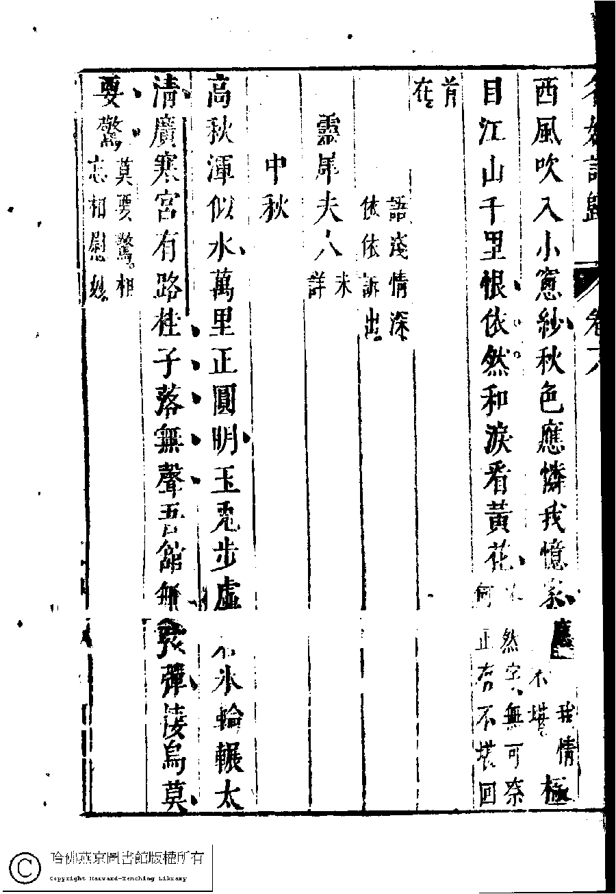 | (PRINT FRIENDLY VERSION) 名媛詩歸﹕三十六卷(鍾惺點次)。明末(1621-1644)刻本 ![]() Page : 18.9b | click for larger image | Back |