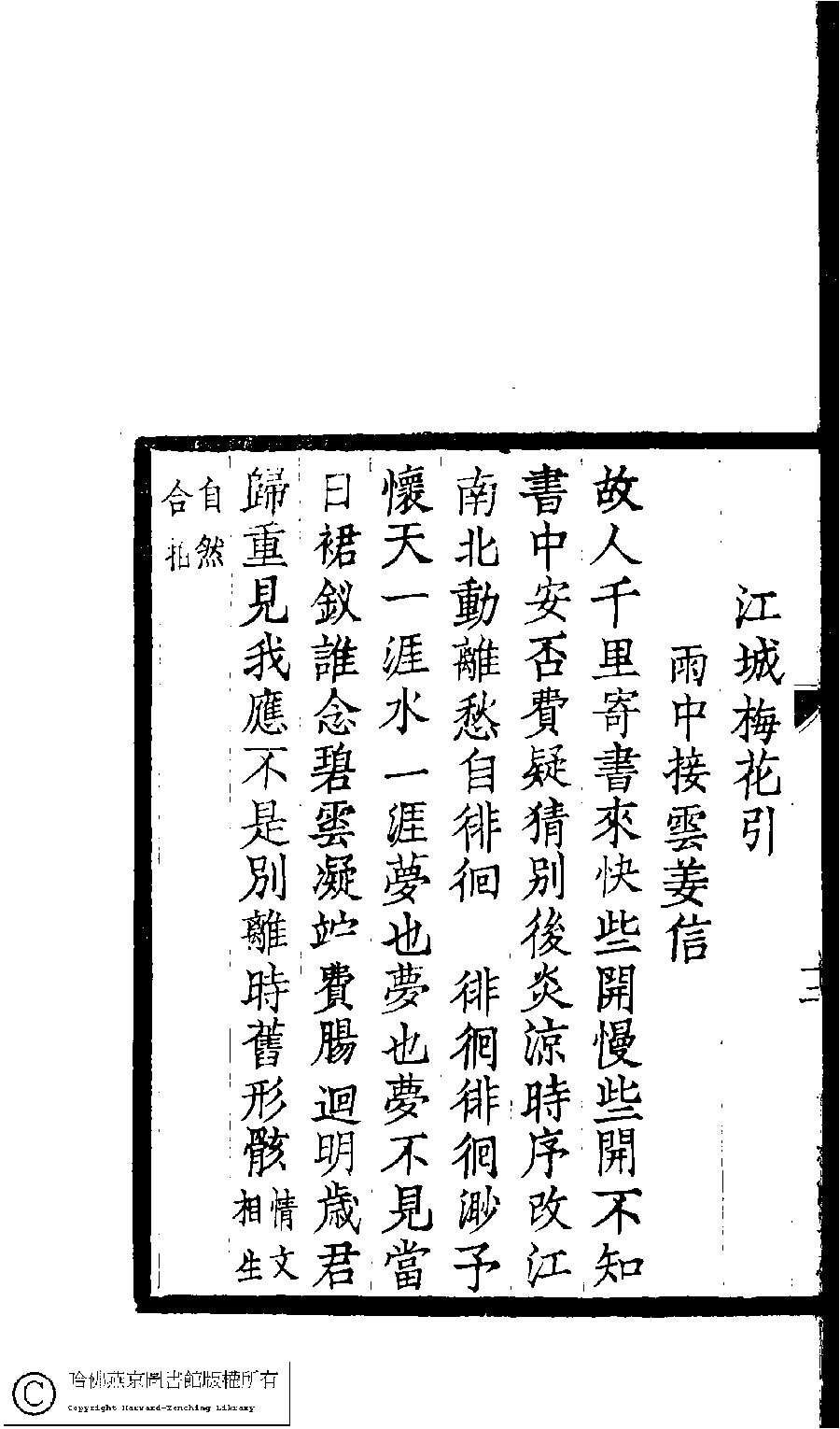 Poem [Jiang cheng mei hua yin : Yu zhong jie Yunjiang xin]