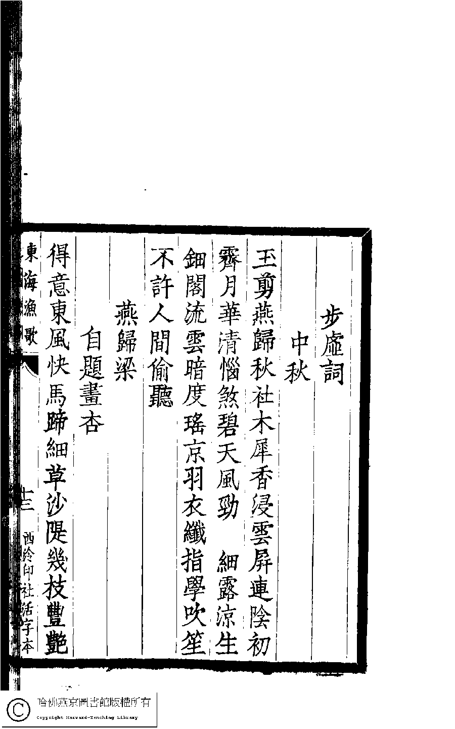 | (PRINT FRIENDLY VERSION) 東海漁歌:四卷, 補遺:一卷(清顧春撰)。西泠印社甲寅(1914) 年排印本 ![]() Page : 3.13a | click for larger image | Back |