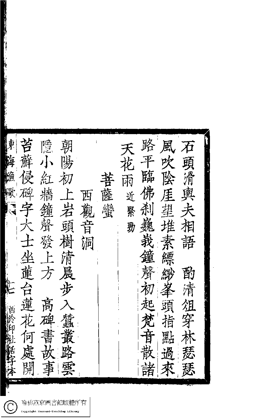 | (PRINT FRIENDLY VERSION) 東海漁歌:四卷, 補遺:一卷(清顧春撰)。西泠印社甲寅(1914) 年排印本 ![]() Page : 3.17a | click for larger image | 東海漁歌:四卷, 補遺:一卷(清顧春撰)。西泠印社甲寅(1914) 年排印本![]() Page : 3.16b | click for larger image | Back |