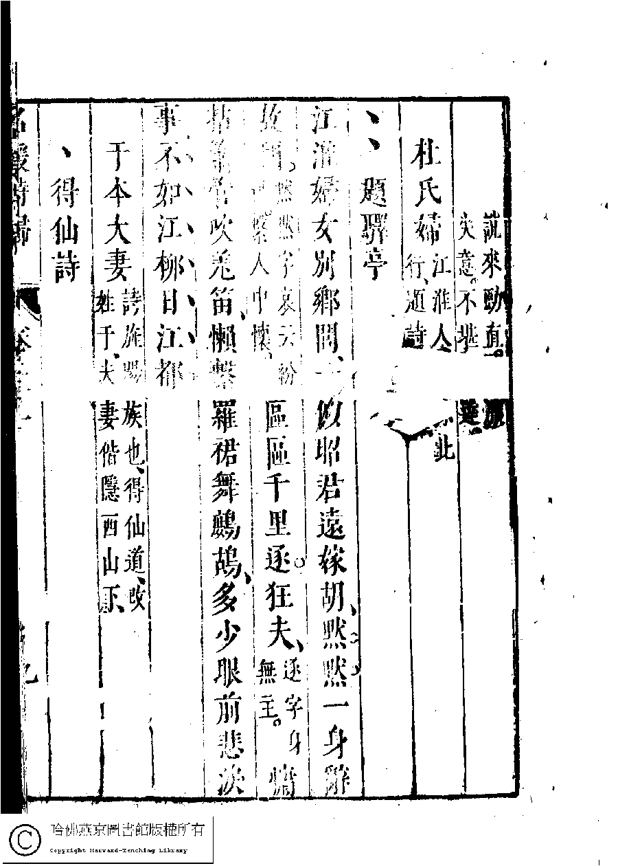 | (PRINT FRIENDLY VERSION) 名媛詩歸﹕三十六卷(鍾惺點次)。明末(1621-1644)刻本 ![]() Page : 21.9a | click for larger image | Back |