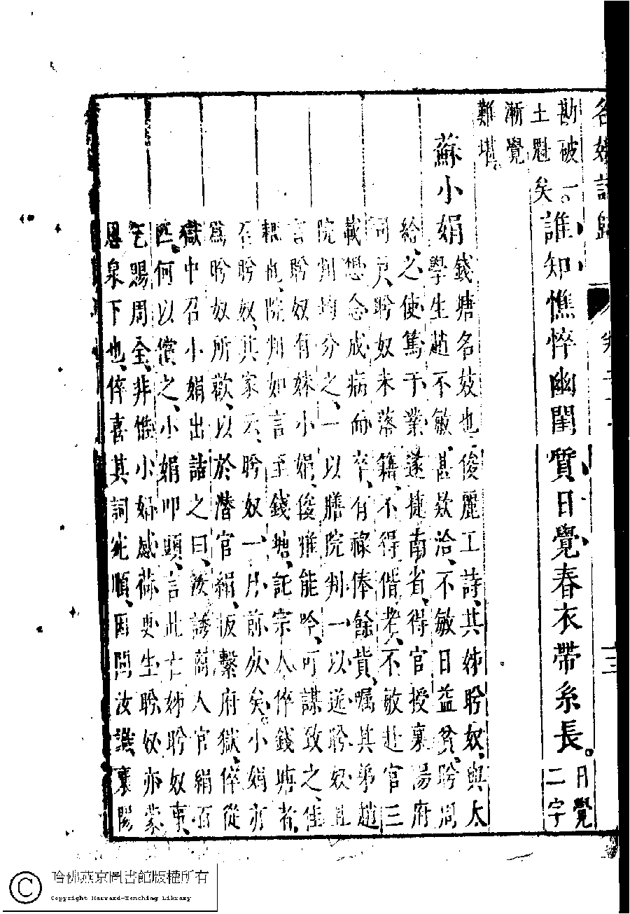 | (PRINT FRIENDLY VERSION) 名媛詩歸﹕三十六卷(鍾惺點次)。明末(1621-1644)刻本 ![]() Page : 21.14a | click for larger image | 名媛詩歸﹕三十六卷(鍾惺點次)。明末(1621-1644)刻本![]() Page : 21.13b | click for larger image | Back |