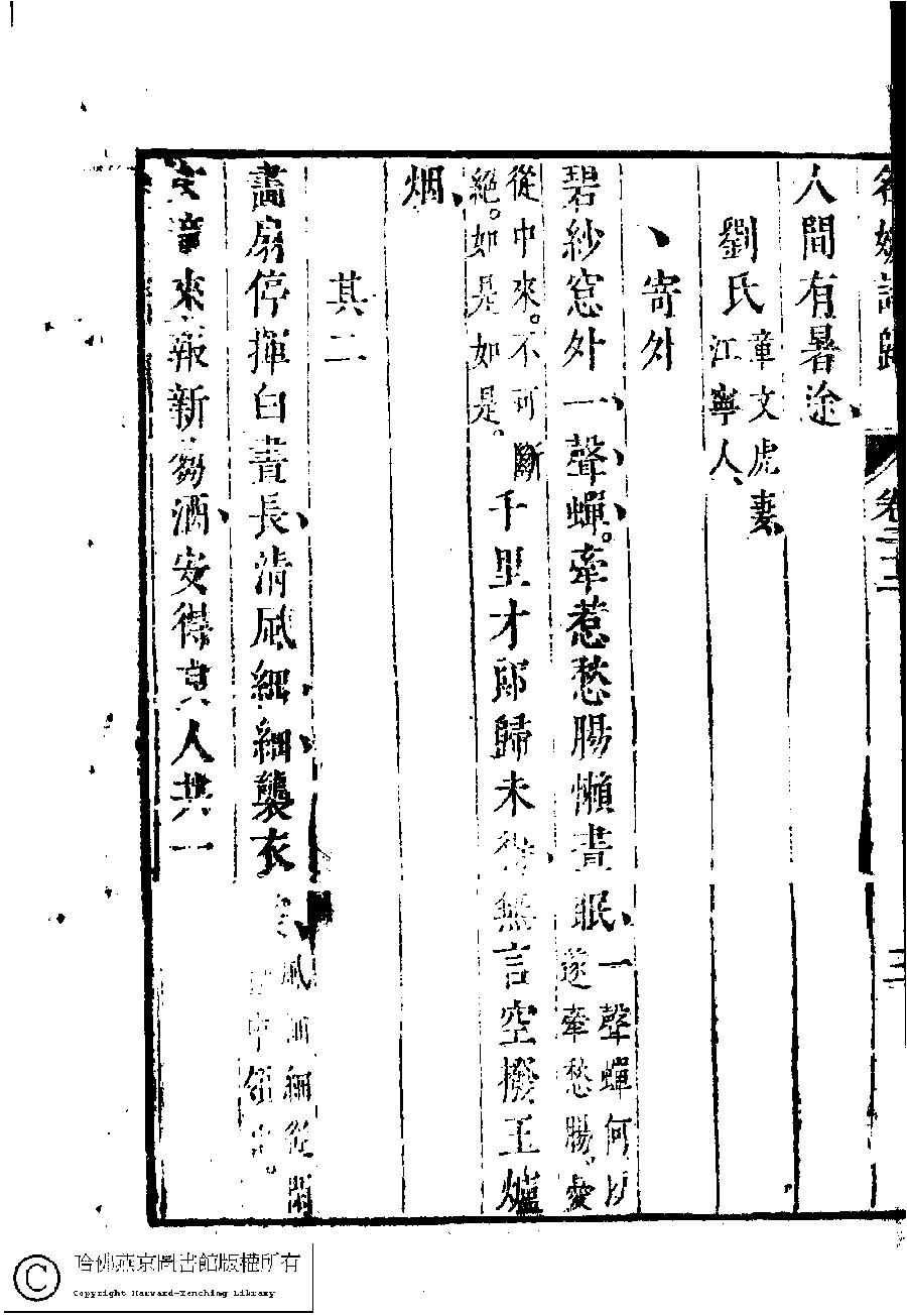 | (PRINT FRIENDLY VERSION) 名媛詩歸﹕三十六卷(鍾惺點次)。明末(1621-1644)刻本 ![]() Page : 22.3b | click for larger image | Back |