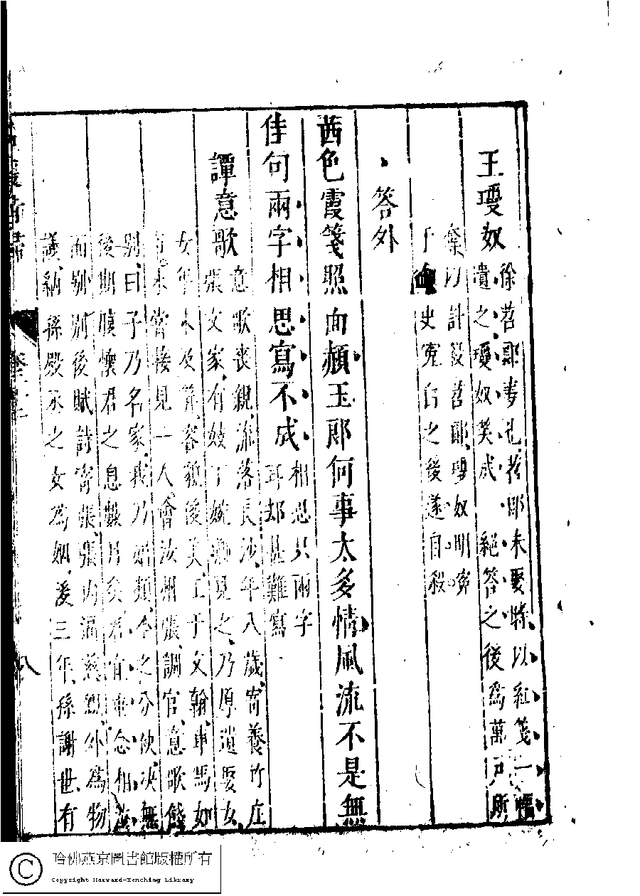 | (PRINT FRIENDLY VERSION) 名媛詩歸﹕三十六卷(鍾惺點次)。明末(1621-1644)刻本 ![]() Page : 22.8b | click for larger image | 名媛詩歸﹕三十六卷(鍾惺點次)。明末(1621-1644)刻本![]() Page : 22.8a | click for larger image | Back |