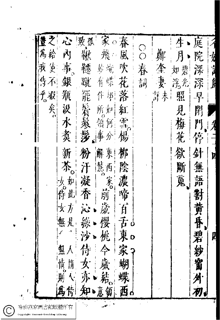 | (PRINT FRIENDLY VERSION) 名媛詩歸﹕三十六卷(鍾惺點次)。明末(1621-1644)刻本 ![]() Page : 24.4b | click for larger image | Back |