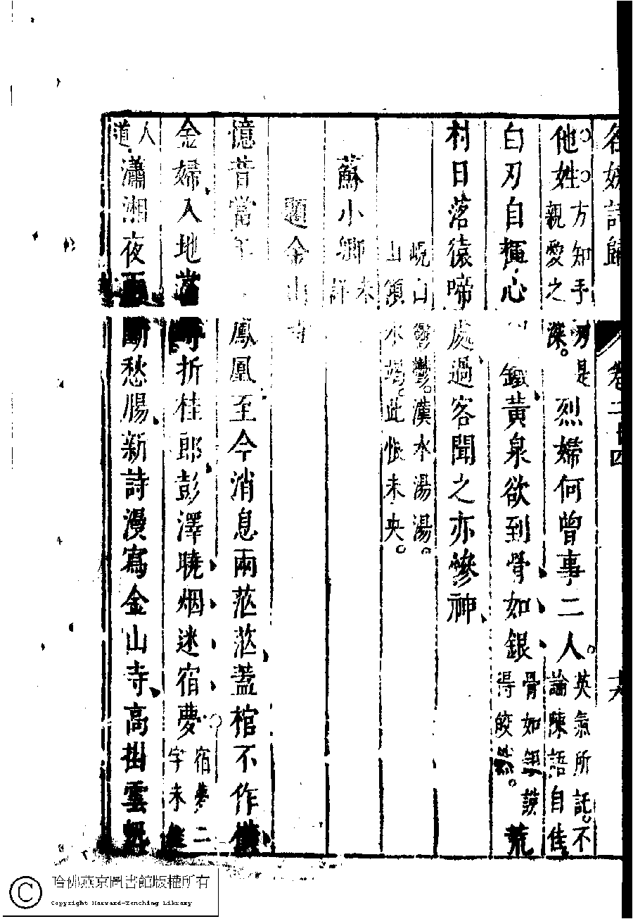 | (PRINT FRIENDLY VERSION) 名媛詩歸﹕三十六卷(鍾惺點次)。明末(1621-1644)刻本 ![]() Page : 24.19b | click for larger image | Back |