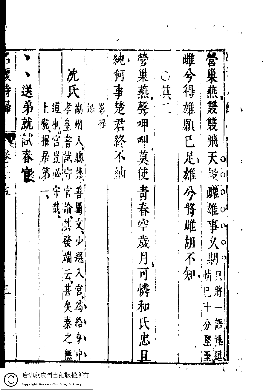 | (PRINT FRIENDLY VERSION) 名媛詩歸﹕三十六卷(鍾惺點次)。明末(1621-1644)刻本 ![]() Page : 25.3a | click for larger image | Back |