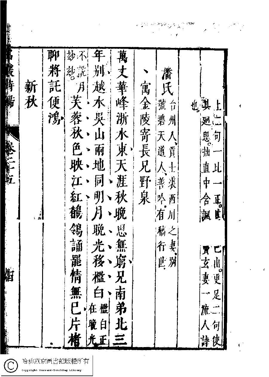 | (PRINT FRIENDLY VERSION) 名媛詩歸﹕三十六卷(鍾惺點次)。明末(1621-1644)刻本 ![]() Page : 25.14a | click for larger image | Back |
