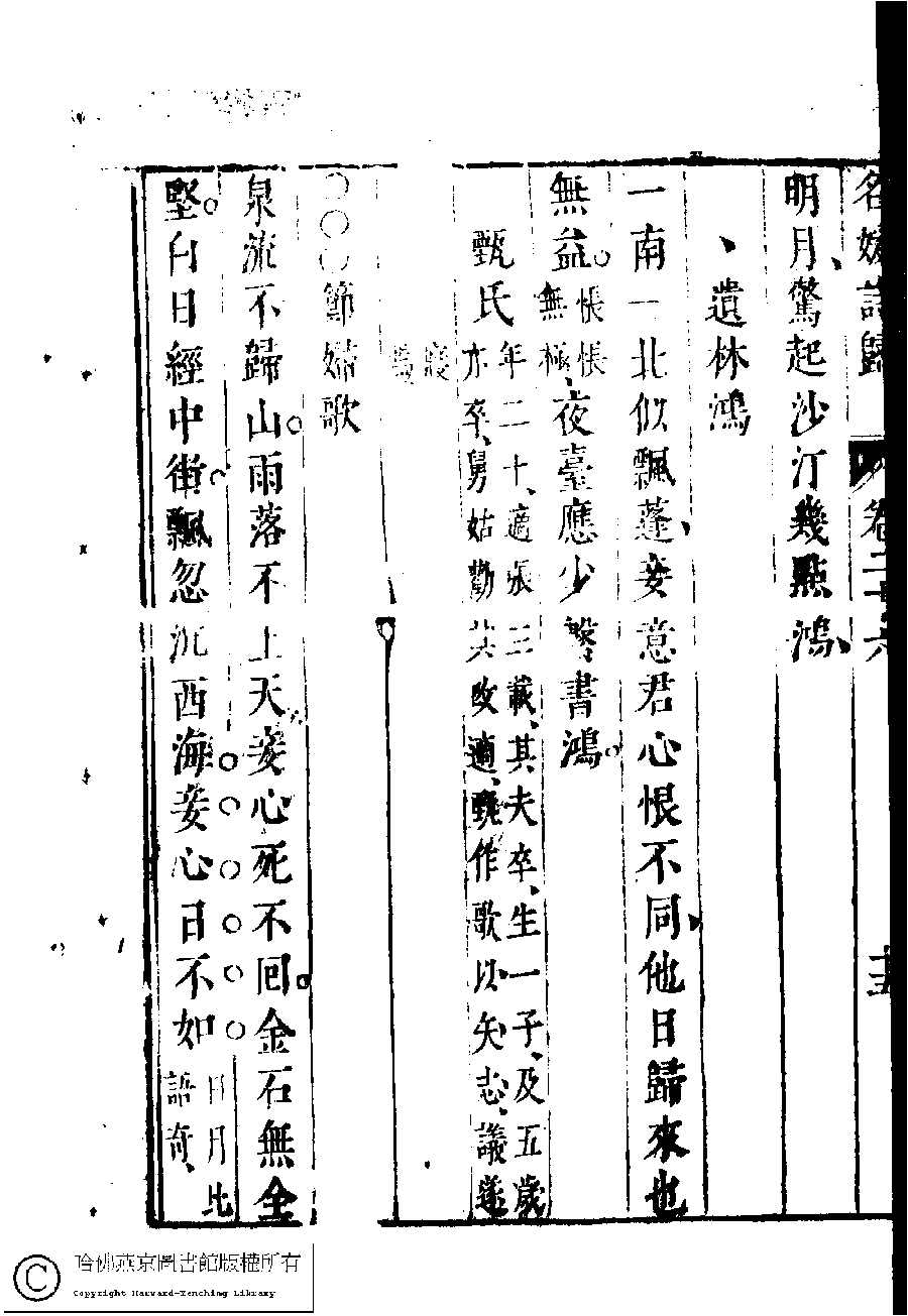 | (PRINT FRIENDLY VERSION) 名媛詩歸﹕三十六卷(鍾惺點次)。明末(1621-1644)刻本 ![]() Page : 26.15b | click for larger image | Back |