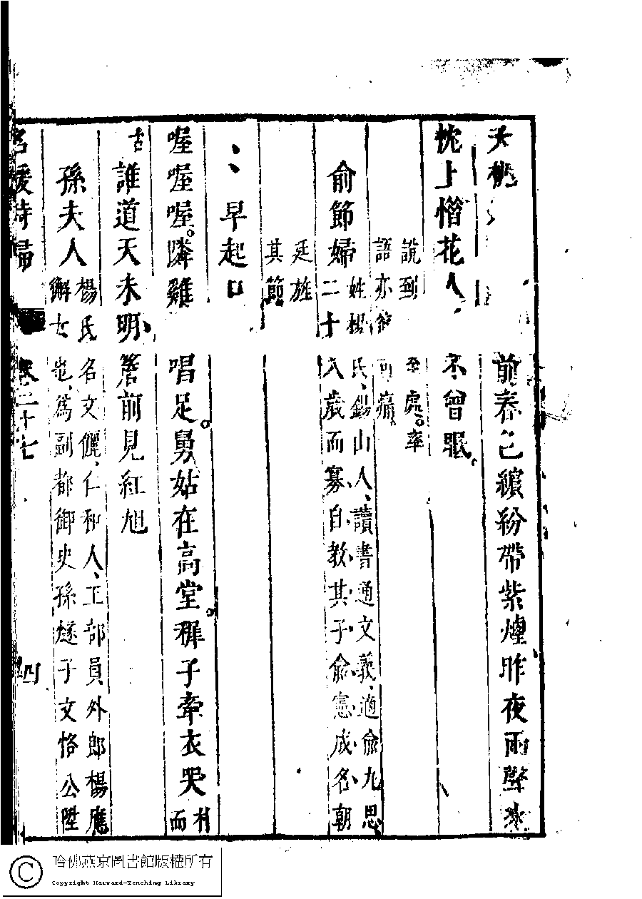 | (PRINT FRIENDLY VERSION) 名媛詩歸﹕三十六卷(鍾惺點次)。明末(1621-1644)刻本 ![]() Page : 27.4a | click for larger image | Back |