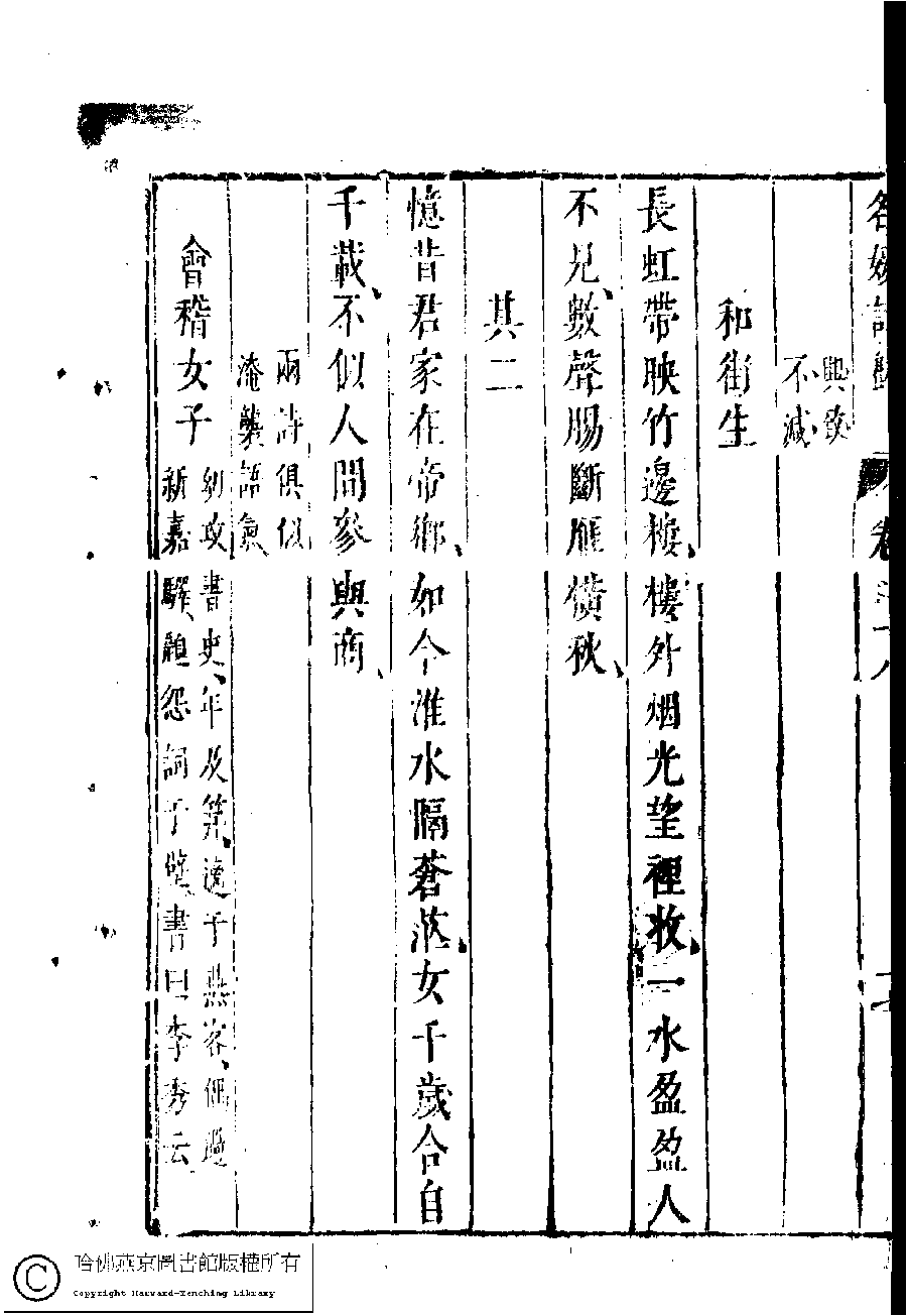 | (PRINT FRIENDLY VERSION) 名媛詩歸﹕三十六卷(鍾惺點次)。明末(1621-1644)刻本 ![]() Page : 28.17b | click for larger image | Back |