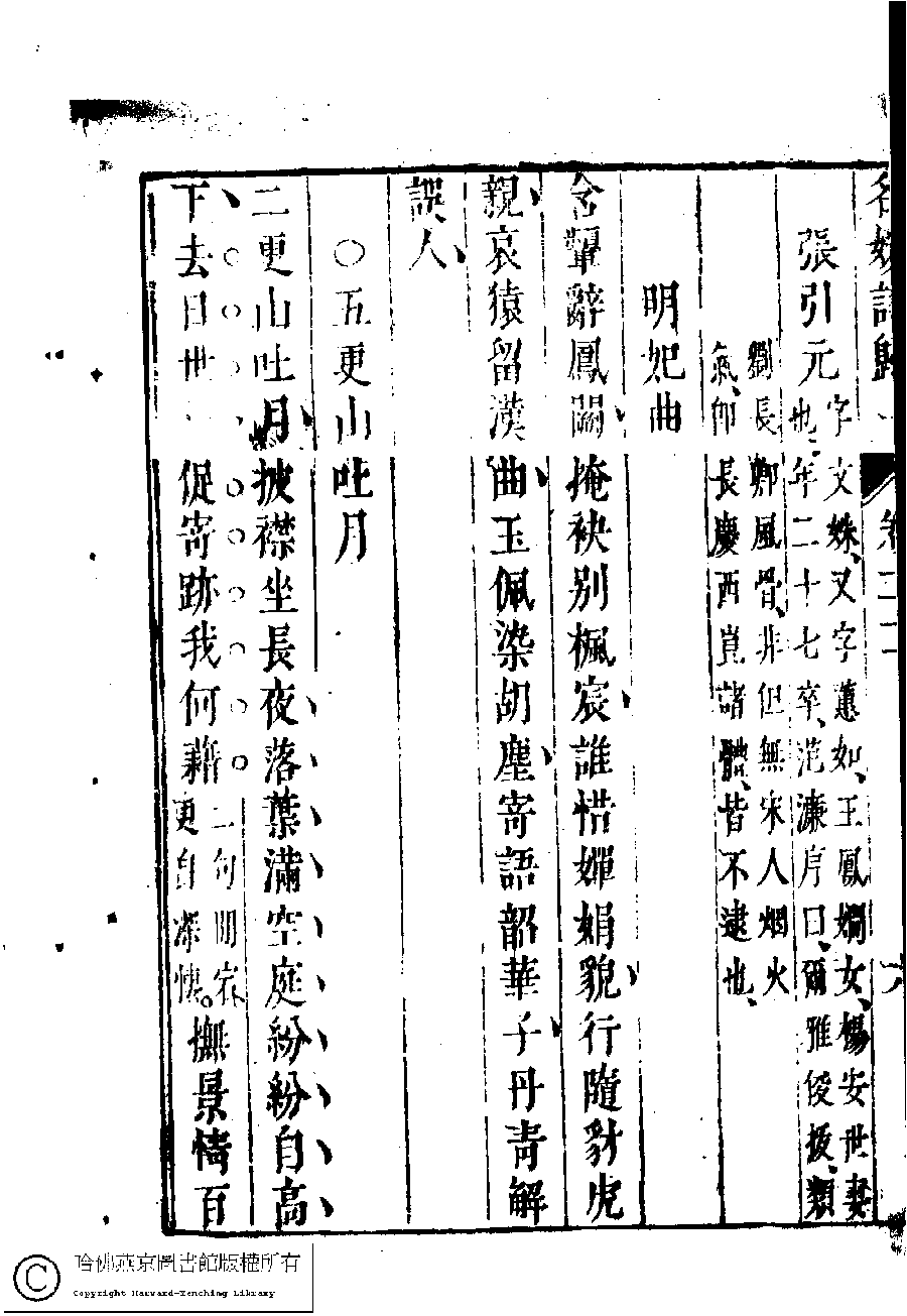 | (PRINT FRIENDLY VERSION) 名媛詩歸﹕三十六卷(鍾惺點次)。明末(1621-1644)刻本 ![]() Page : 31.6b | click for larger image | Back |