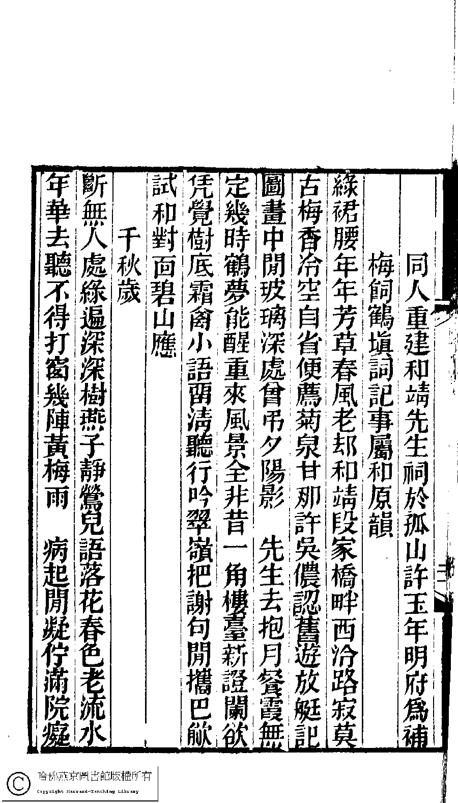 Poem [Mo yu zi : Tong ren chong jian Hejing xian sheng ci yu Gu Shan Xu Yunian ming fu wei bu mei si he tian ci ji shi zhu he yuan yun]