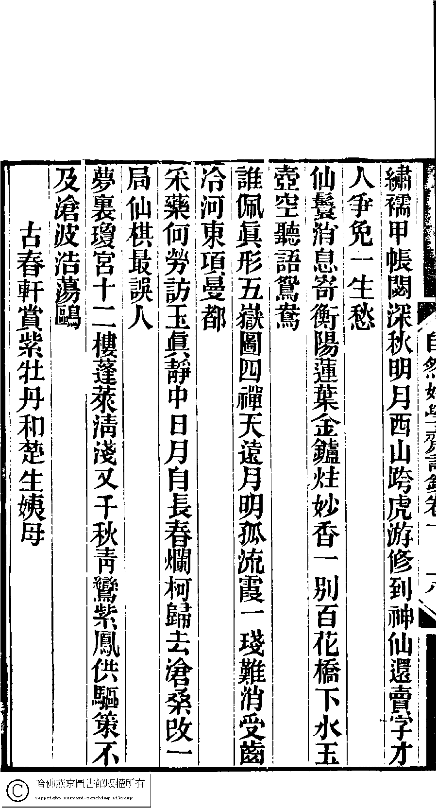 | (PRINT FRIENDLY VERSION) 林下雅音集﹕五種(淸冒俊輯) : 自然好學齋詩鈔: 十卷。淸光緖十年(1884)刻本。 ![]() Page : 1.19a | click for larger image | 林下雅音集﹕五種(淸冒俊輯) : 自然好學齋詩鈔: 十卷。淸光緖十年(1884)刻本。![]() Page : 1.18b | click for larger image | Back |