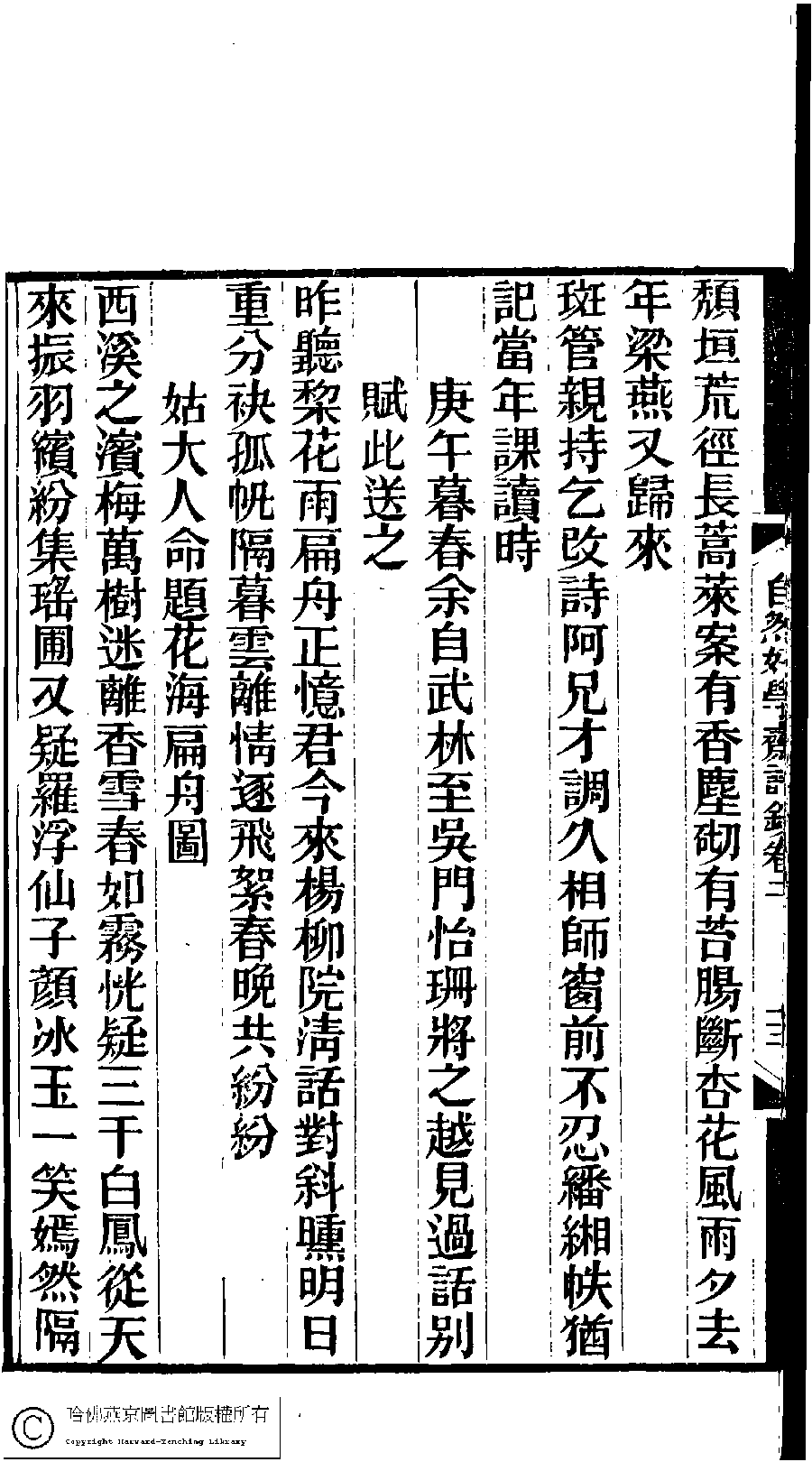 | (PRINT FRIENDLY VERSION) 林下雅音集﹕五種(淸冒俊輯) : 自然好學齋詩鈔: 十卷。淸光緖十年(1884)刻本。 ![]() Page : 2.14a | click for larger image | 林下雅音集﹕五種(淸冒俊輯) : 自然好學齋詩鈔: 十卷。淸光緖十年(1884)刻本。![]() Page : 2.13b | click for larger image | Back |