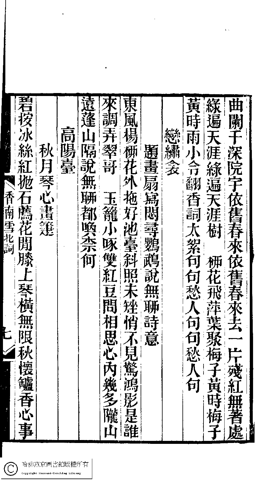 | (PRINT FRIENDLY VERSION) 林下雅音集﹕五種(淸冒俊輯) : 香南雪北詞: 一卷。淸光緖十年(1884)刻本。 ![]() Page : 7b | click for larger image | 林下雅音集﹕五種(淸冒俊輯) : 香南雪北詞: 一卷。淸光緖十年(1884)刻本。![]() Page : 7a | click for larger image | Back |